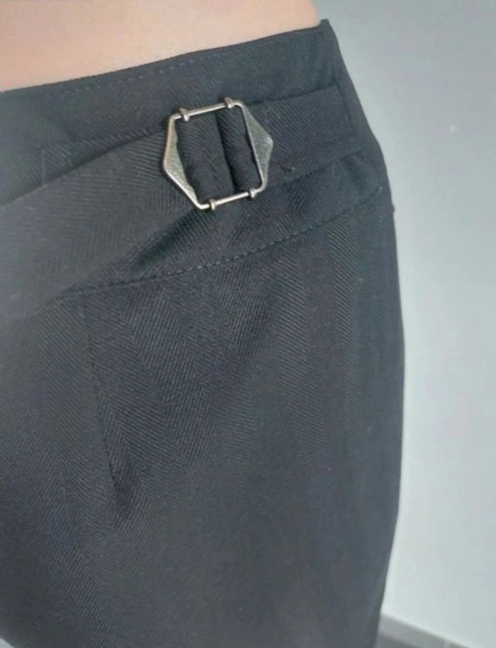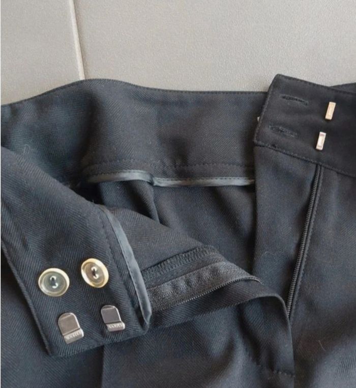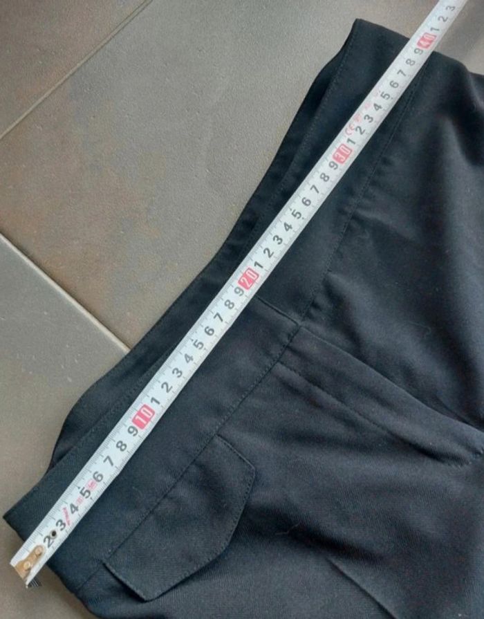 Ajustable grâce à 2 boucles de chaque côté. Taille basse 1 poche fictive devant Tissu épais Bandes noires. Taille petit (plutôt un 38). Le mannequin mesure 1m60.