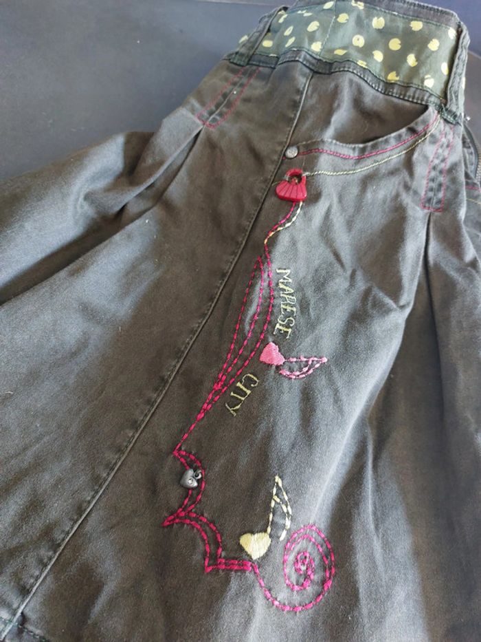 large ceinture à pois jaunes jolie broderie sur un côté fermeture zippée sur l'autre coté