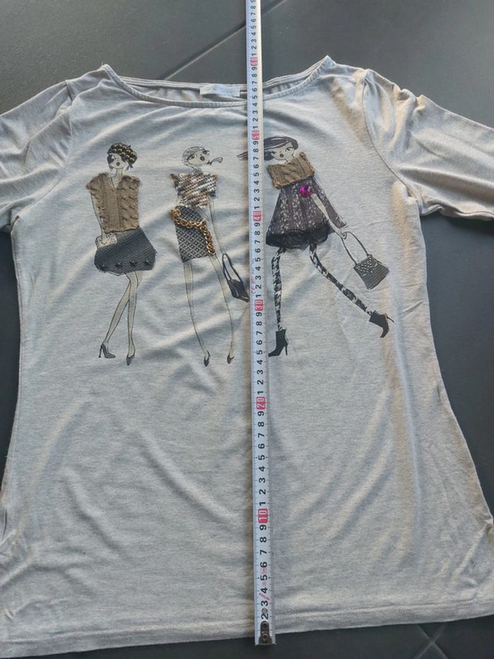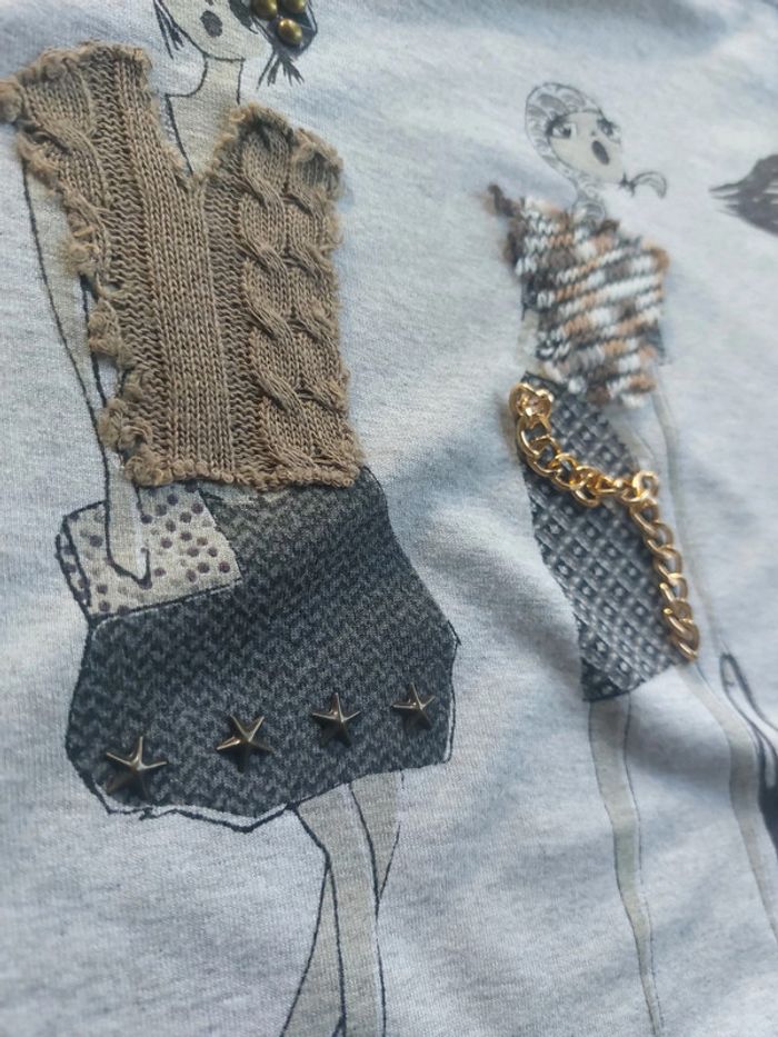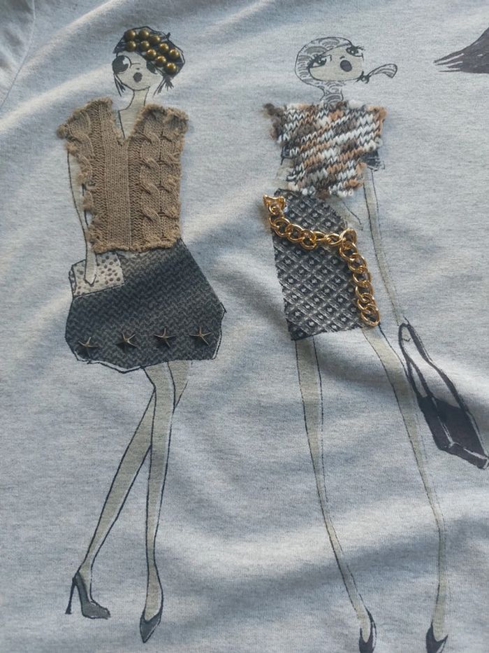 Les 3 femmes sur le tee-shirt ont certaines parties de leur habit en relief.