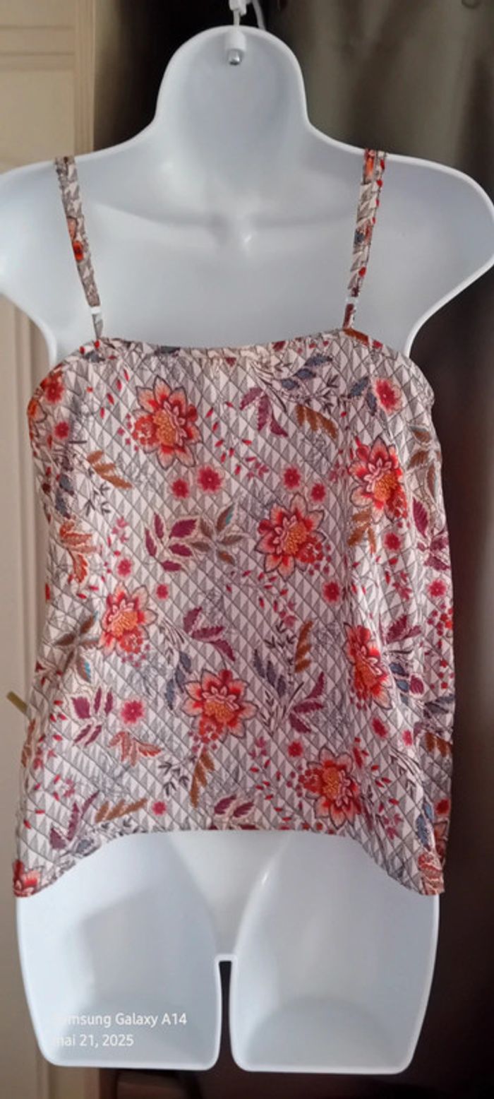 Top fines bretelles motif fleurs et losanges femme 36 grain de malice - photo numéro 14