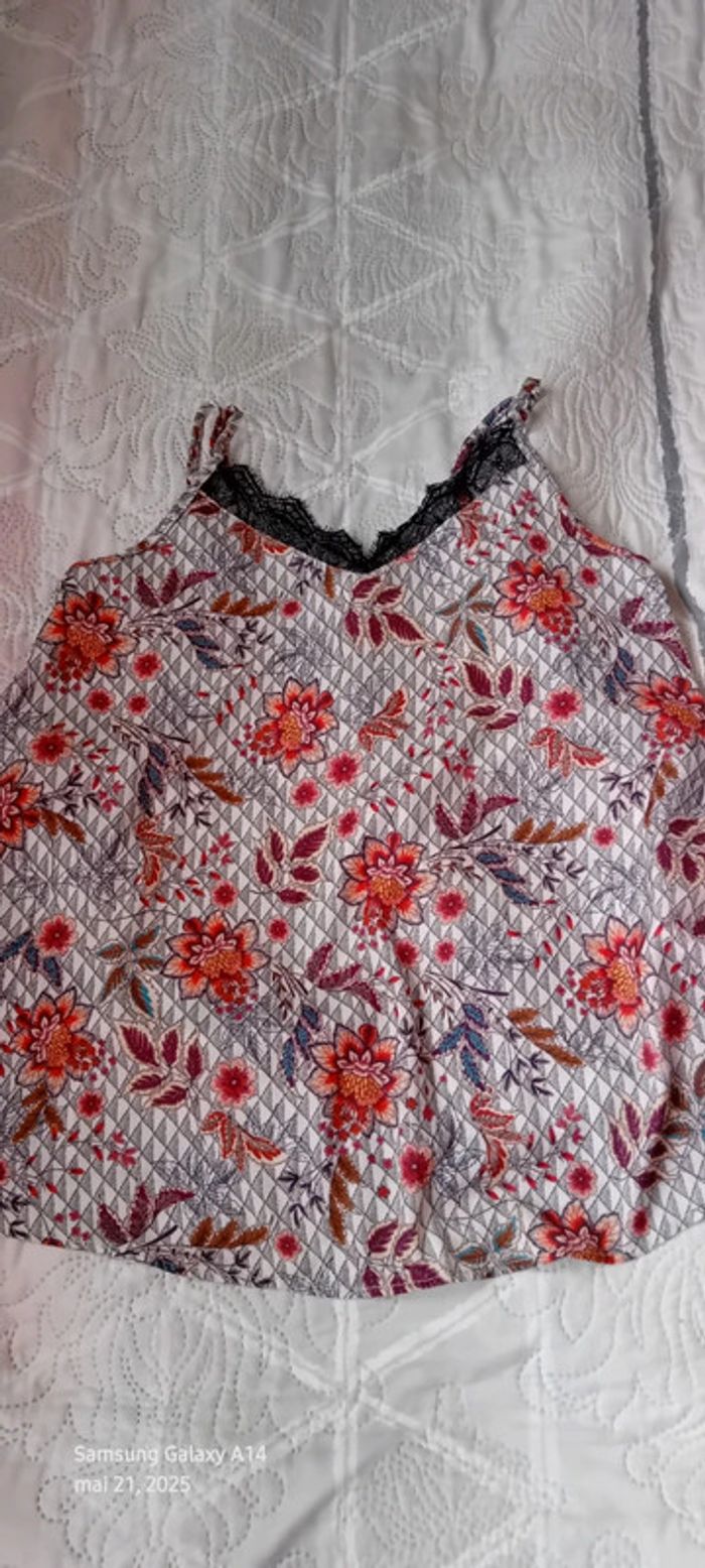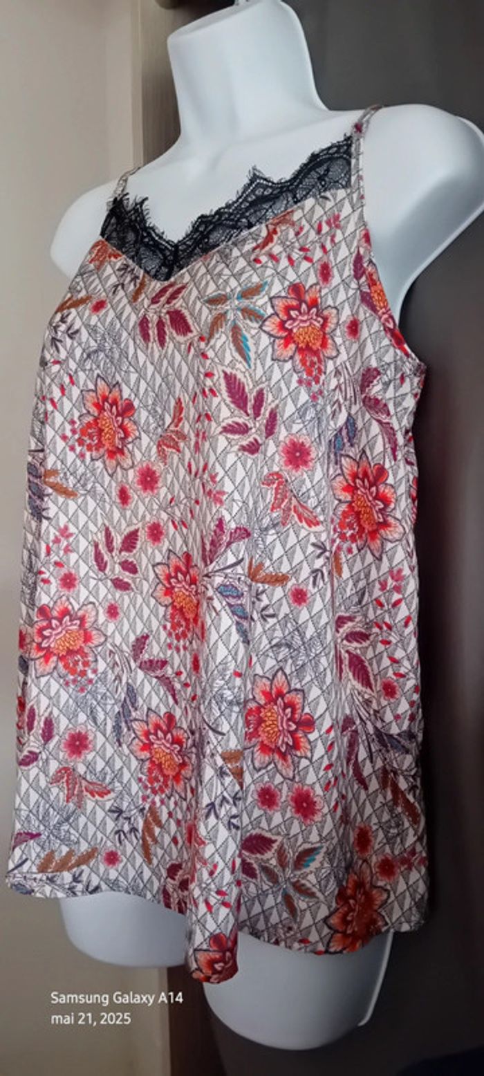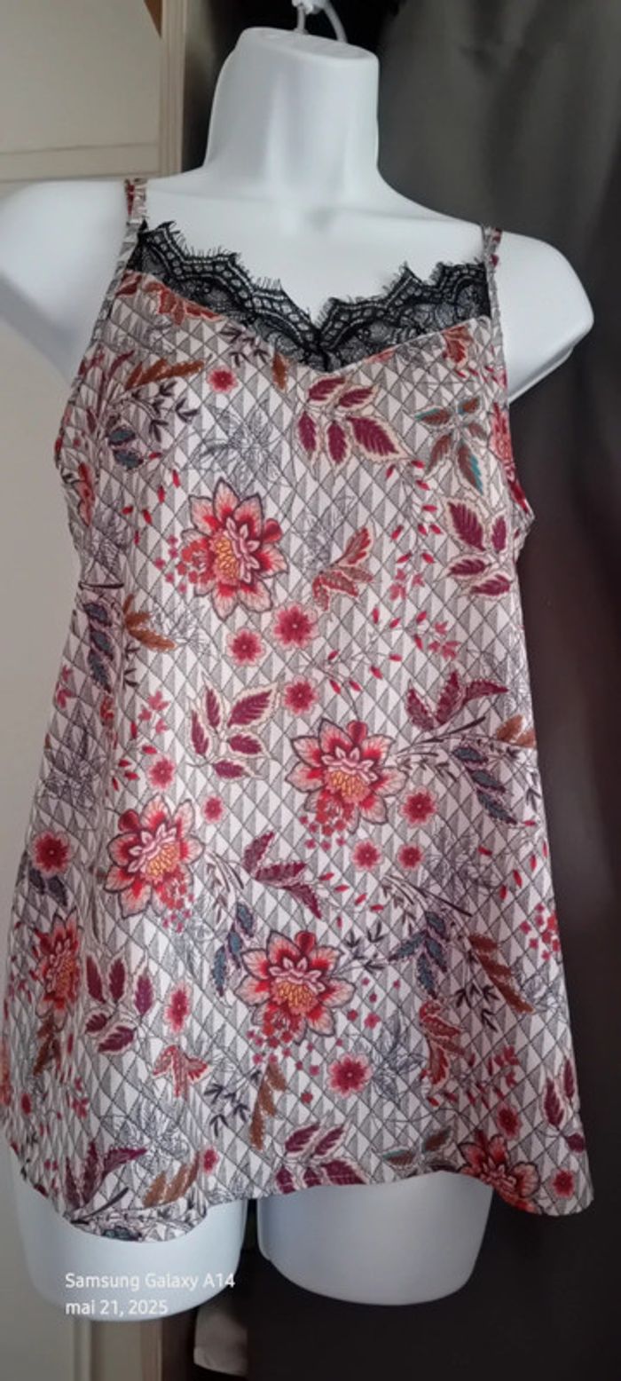 Top fines bretelles motif fleurs et losanges femme 36 grain de malice - photo numéro 19
