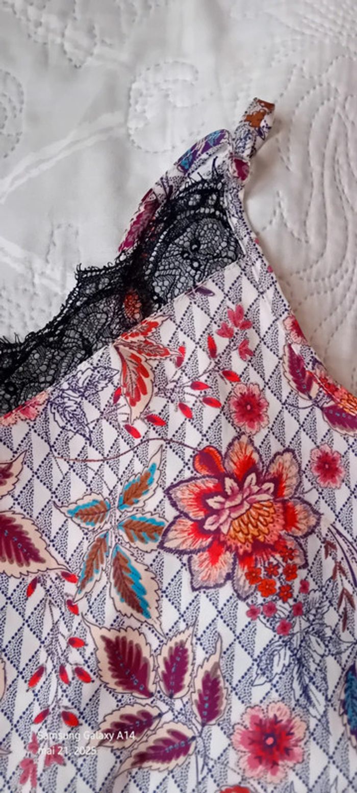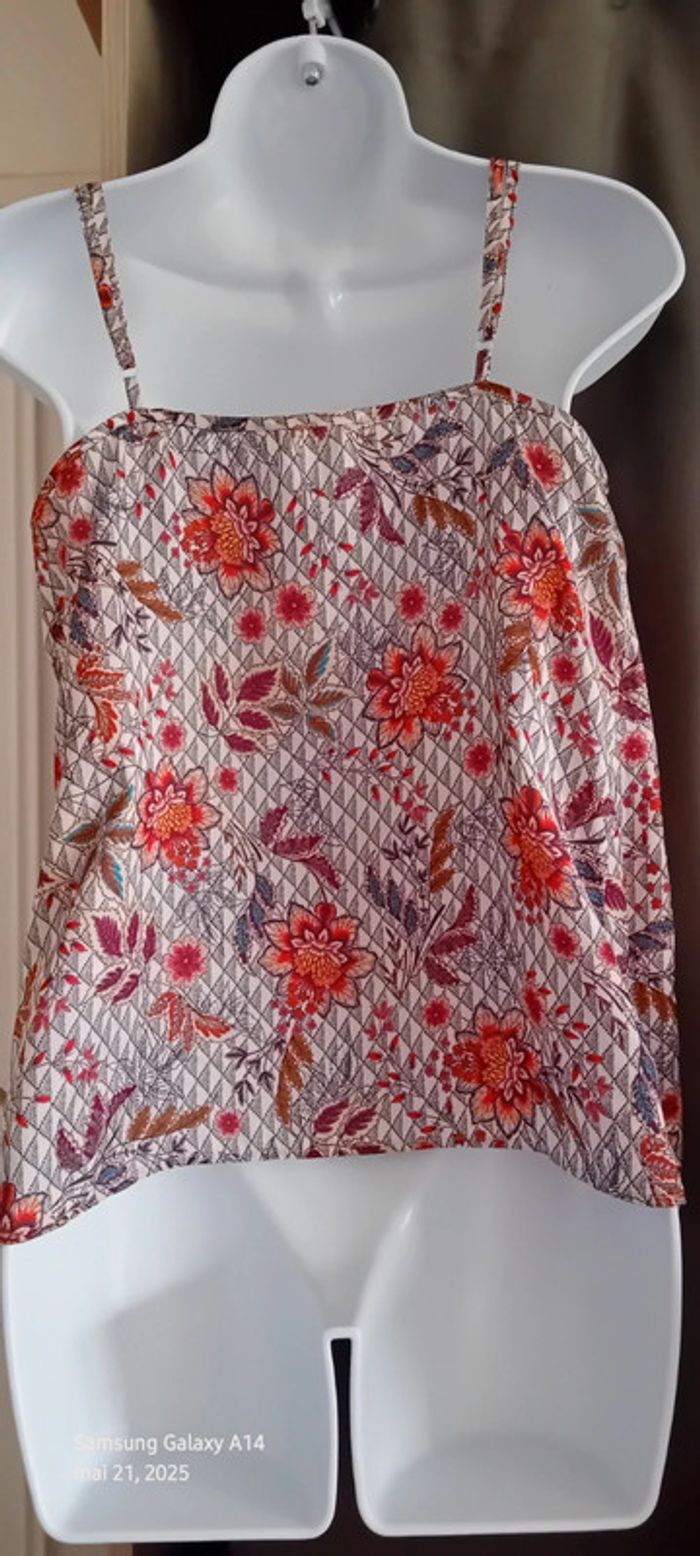 Top fines bretelles motif fleurs et losanges femme 36 grain de malice - photo numéro 13