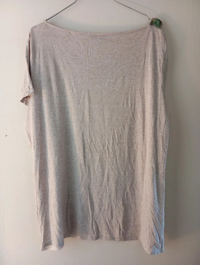 Tee-shirt à motifs floraux/animaux, en 46. Un vêtement en bon état général mais à l'exception d'accrocs (cf. voir photo n°3). #jacquelineriu #teeshirtfemme #teeshirtfemme46 #teeshirtjacquelineriu