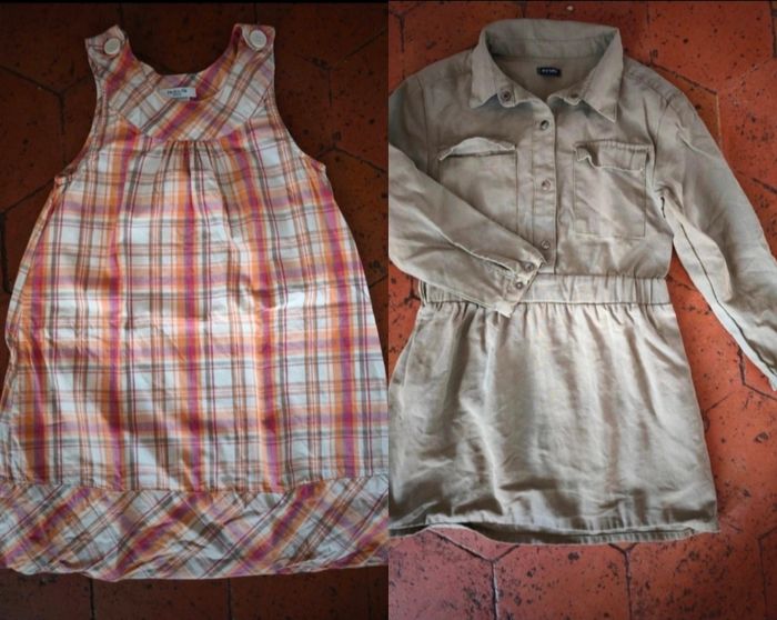 Lot robes enfants 6€ les deux ou 3€50 l'une √ Petite robe à carreaux sans manches La Redoute en très bon état T.114 cm 100% coton √ Robe kaki manches longues Kiabi en très bon état T.6 ans