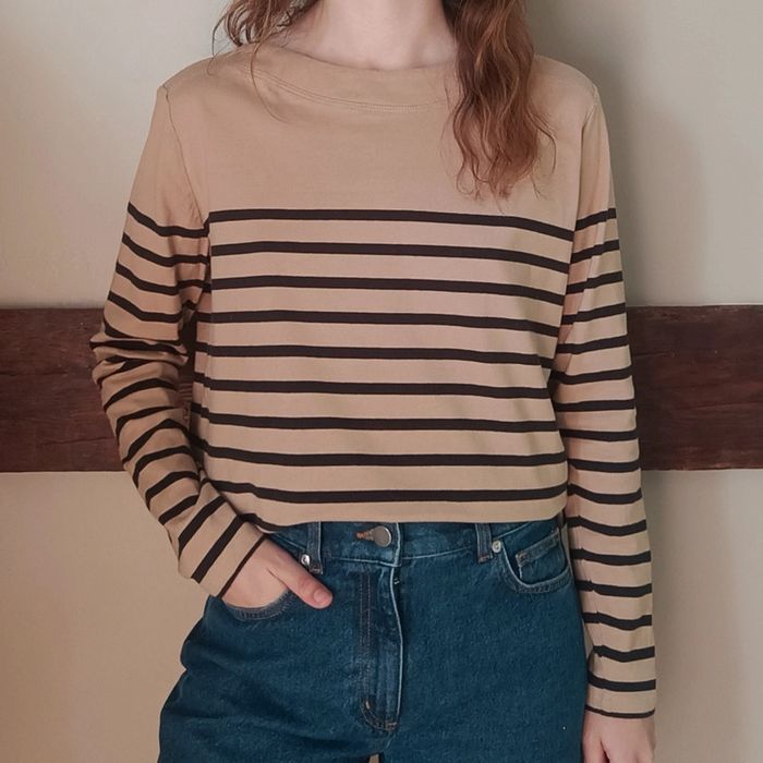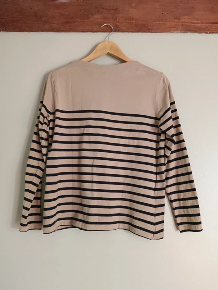 💐 Réductions sur les lots 💐 2 articles : -5% 3 & 4 articles : -10% 5 articles et plus : -15% ⚠️ Pas d'envoi Vinted go, merci Étant une entreprise déclarée payant des charges, merci de respecter mon travail en ne le bradant pas 🙏 ✨ Marinière manches longues marron clair rayée noir Monoprix s'engager pour durer 100% coton issu de l'agriculture biologique Très bon état Taille 38 Je la porte sur un 36 sur les photos et mesure 1m61 📏 Dimensions à plat : carrure 40cm, largeur poitrine 47cm, longueur 59cm #desibellesfripes38
