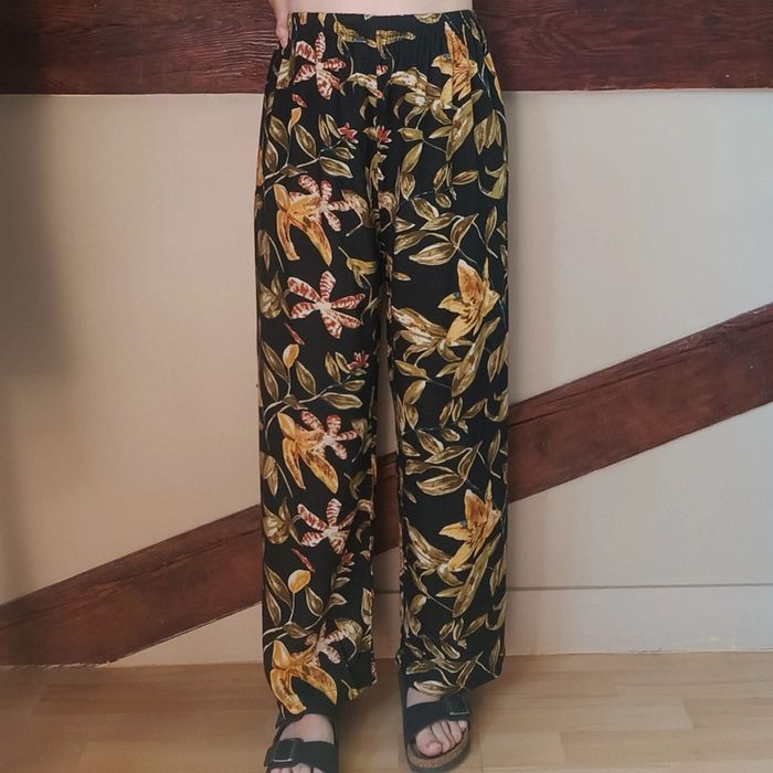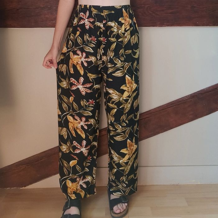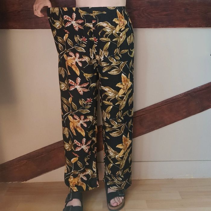 💐 Réductions sur les lots 💐 2 articles : -5% 3 & 4 articles : -10% 5 articles et plus : -15% ⚠️ Pas d'envoi Vinted go, merci Étant une entreprise déclarée payant des charges, merci de respecter mon travail en ne le bradant pas 🙏 ✨💐 Réductions sur les lots 💐 2 articles : -5% 3 & 4 articles : -10% 5 articles et plus : -15% ⚠️ Pas d'envoi Vinted go, merci Étant une entreprise déclarée payant des charges, merci de respecter mon travail en ne le bradant pas 🙏 ✨ Pantalon décontracté taille haute élastique et jambe droite large Noir à motif feuilles vert kaki ocre rouge Pepette Collection, années 90/2000 100% viscose belle qualité État impeccable Taille 46/48 sur étiquette mais taille bien plus petit, il sera ok pour une taille 38 ou 40 actuelle Je le porte sur un 36 sur les photos et mesure 1m61 📏 Dimensions à plat : largeur taille élastique 34 à 50cm, fourche 34cm, longueur 99cm #desibellesfripes38 #desibellesfripes40