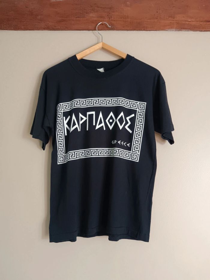 💐 Réductions sur les lots 💐 2 articles : -5% 3 & 4 articles : -10% 5 articles et plus : -15% ⚠️ Pas d'envoi Vinted go, merci Étant une entreprise déclarée payant des charges, merci de respecter mon travail en ne le bradant pas 🙏 ✨ T-shirt bleu marine de vacances à inscription "Karpathos Greece" Karpathos est une île Grecque de la mer Égée à mi chemin entre l'île de Rhodes et la Crète Made in Greece fabriqué en Grèce, approximativement années 90 100% beau coton Très bon état Taille 36 ample Je le porte sur un 36 sur les photos et mesure 1m61 📏 Dimensions à plat : largeur poitrine 48cm, longueur 62cm #desibellesfripes36