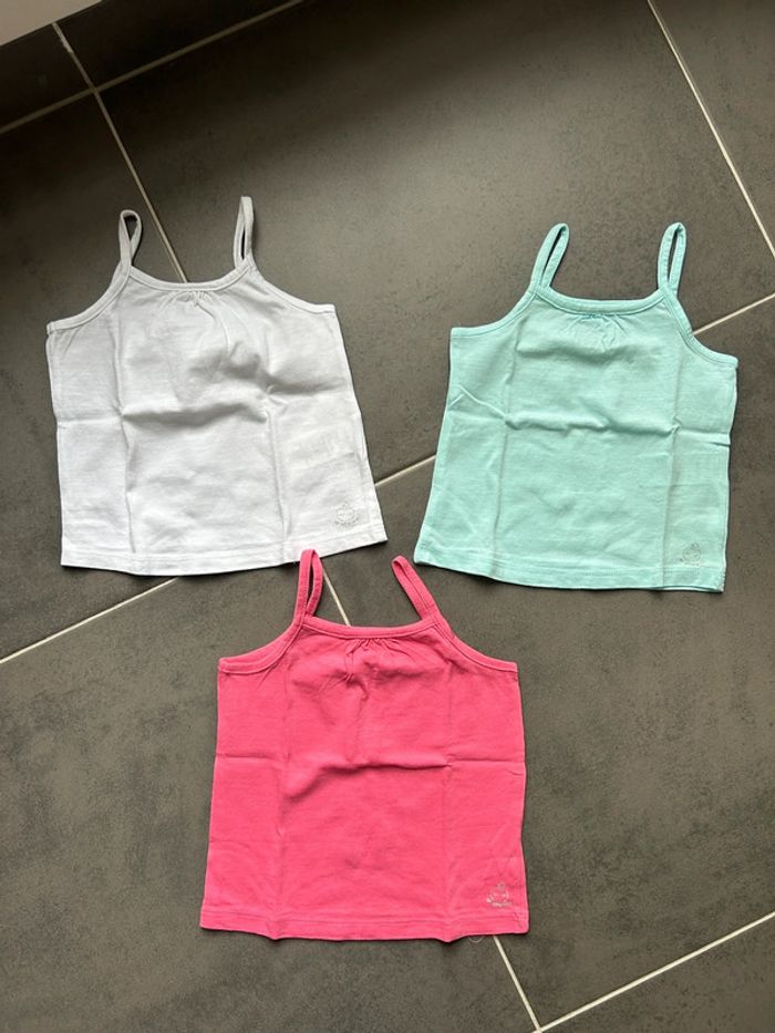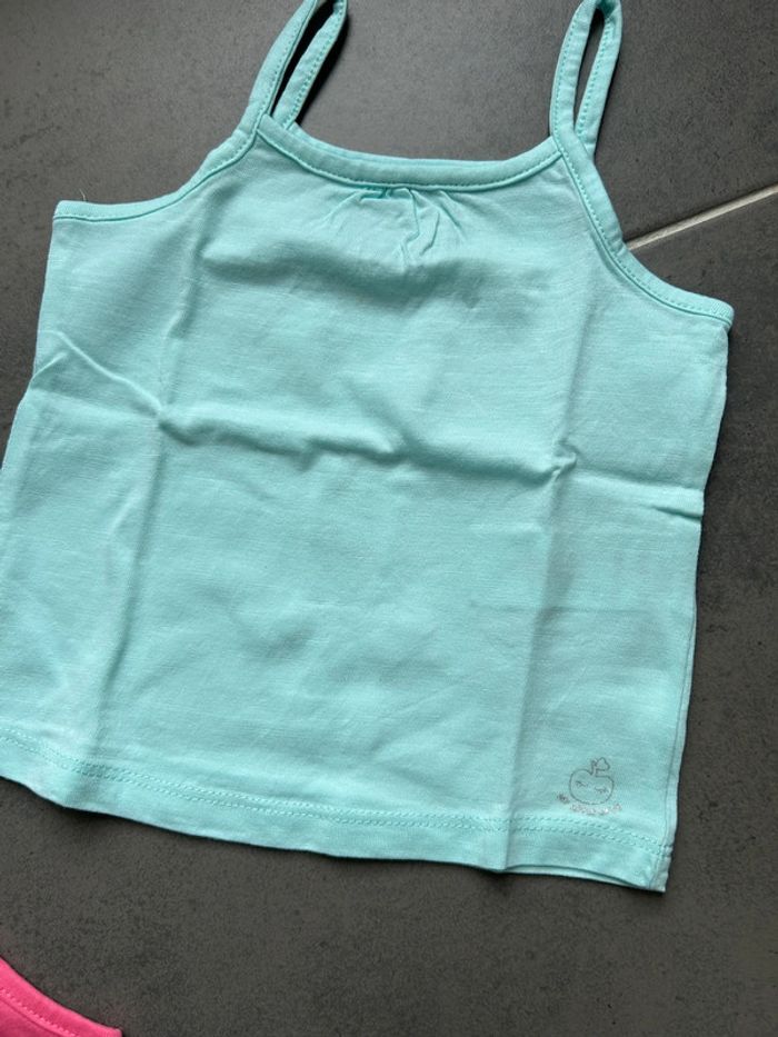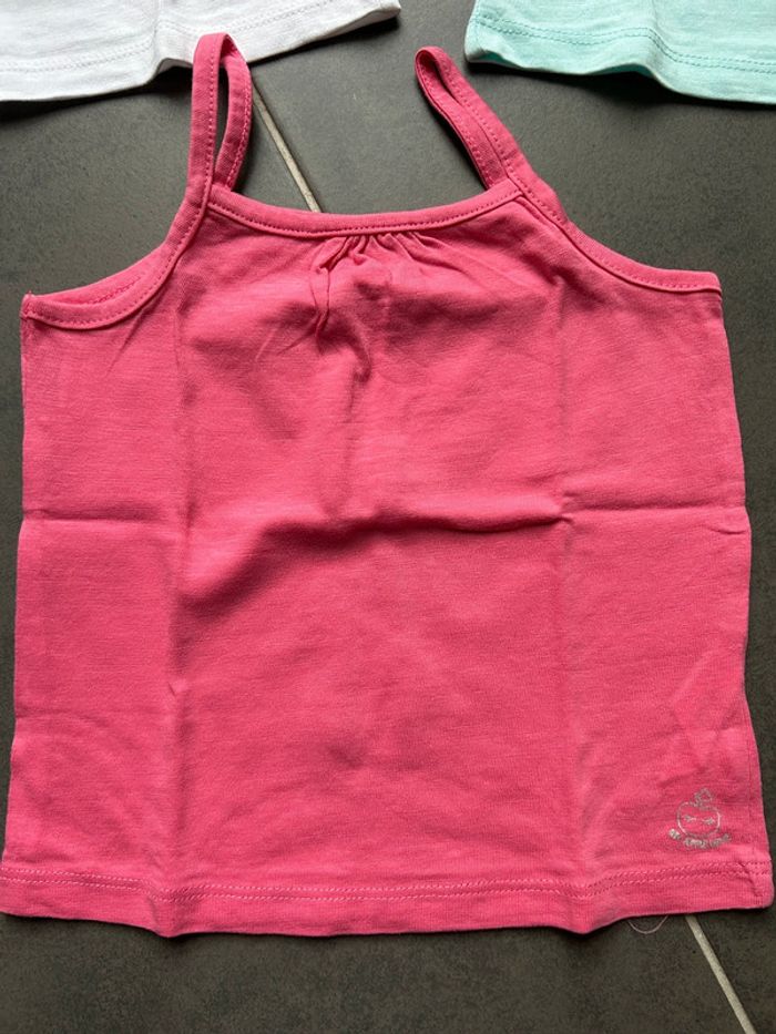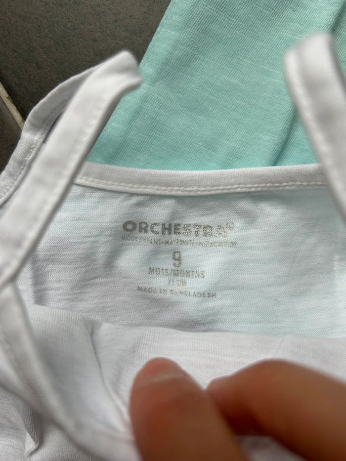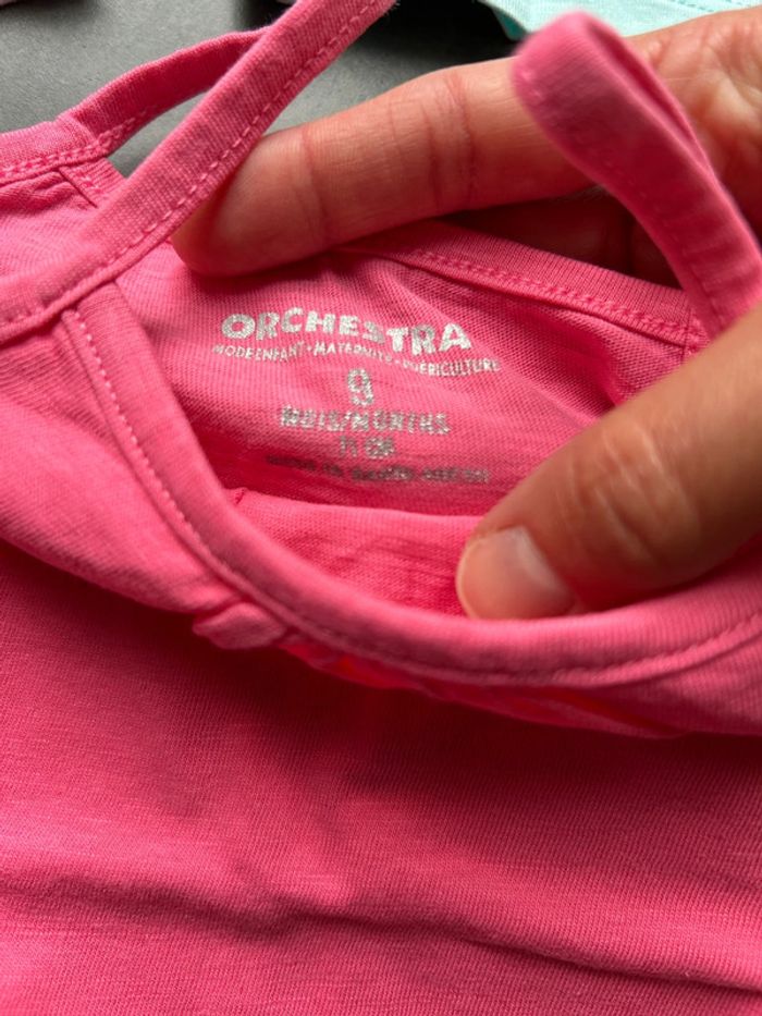 Marque: orchestra Taille: 9 mois Couleurs: fuschia, turquoise et blanc Particularité: À fines bretelles Un petit logo argenté en bas à gauche de chaque débardeurs Lavés et repassés État: neufs sans étiquette ⚠️ n’hésitez pas à regarder dans mon dressing pour faire un lot avec d’autres articles-> remise faite avec plaisir sur le tout 💸