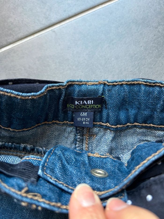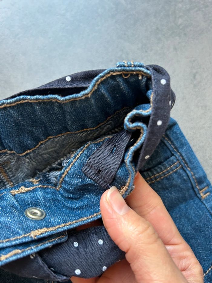 Marque: kiabi Taille: 6 mois Couleur: bleu foncé Particularité: Ceinture lacet à pois blanc à nouer devant Taille ajustable par élastique à l’intérieur 2 fausses poches latérales Vraies poches arrières Revers Bouton pression Lavé et repassé État: neuf sans étiquette ⚠️ n’hésitez pas à regarder dans mon dressing pour faire un lot avec d’autres articles-> remise faite avec plaisir sur le tout 💸