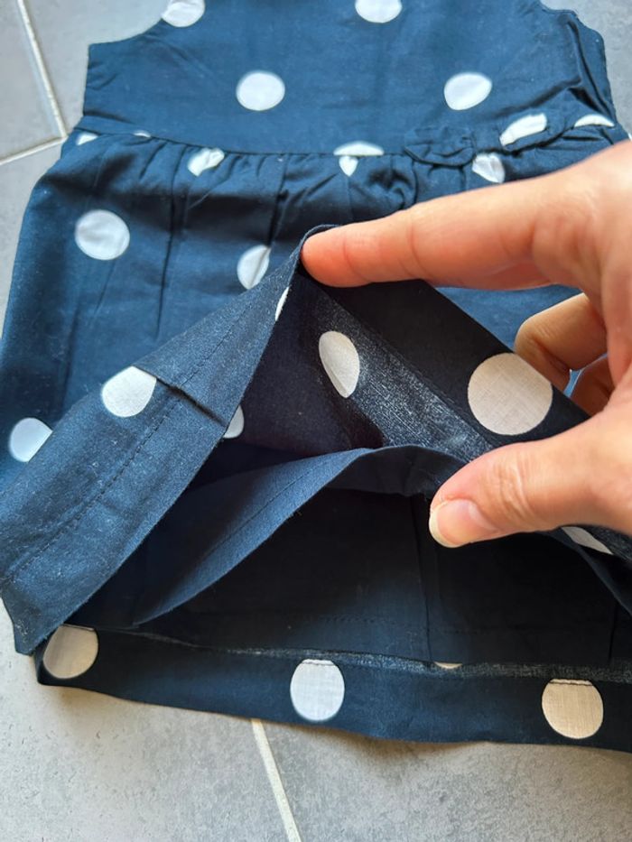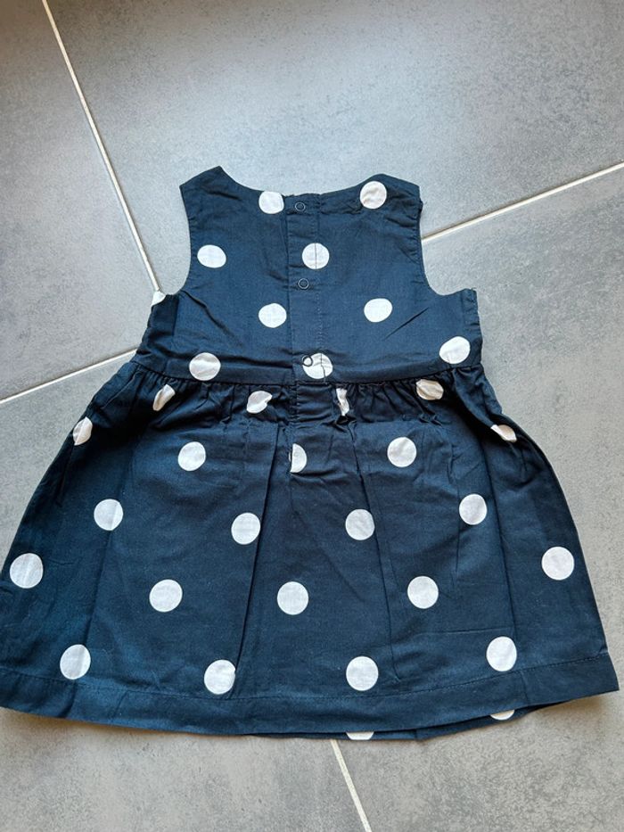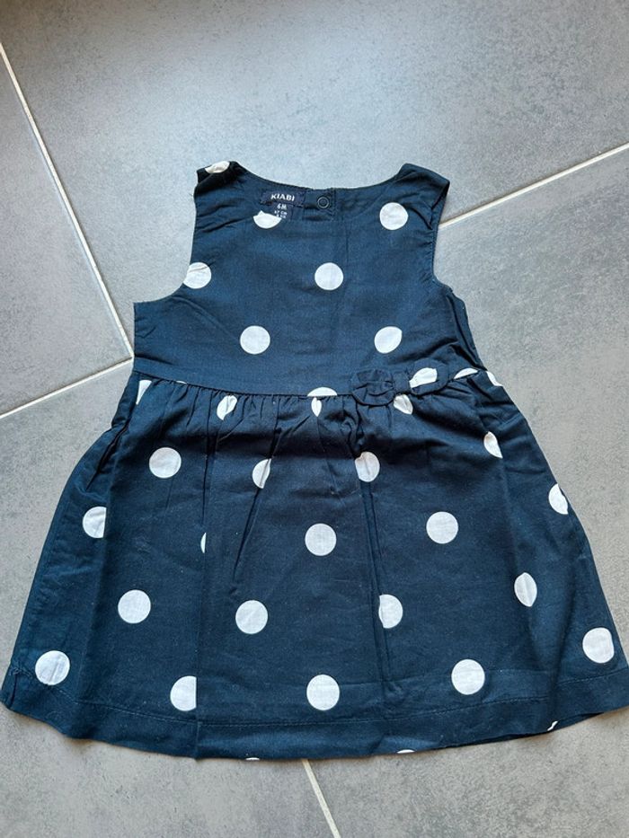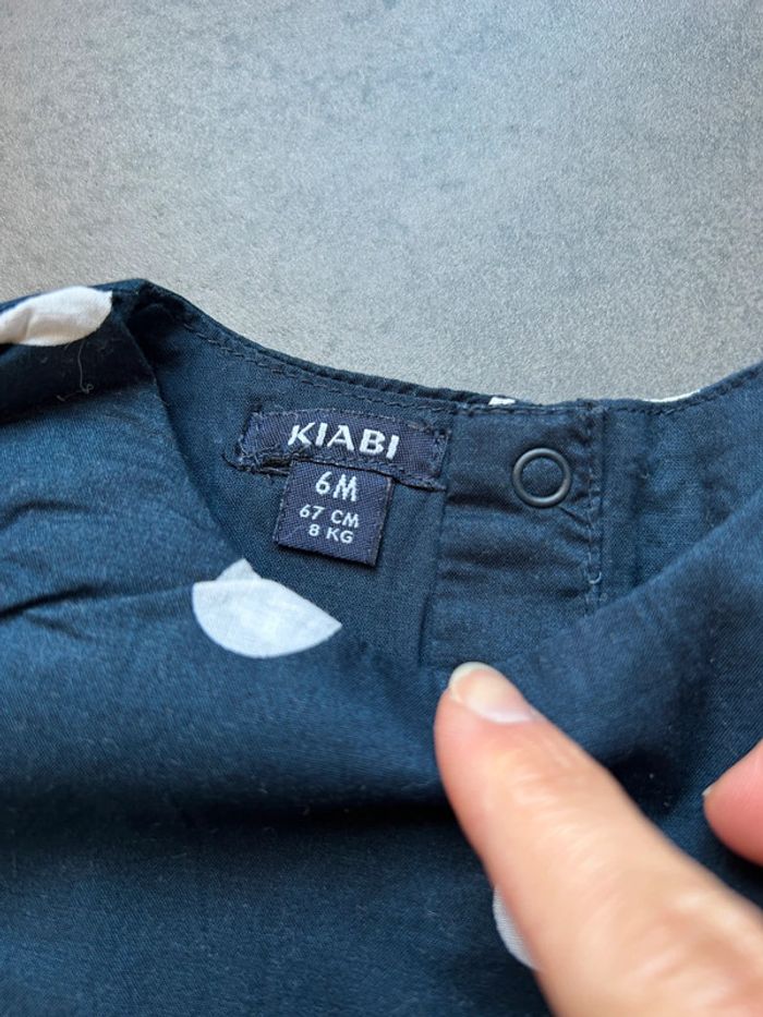 Marque: kiabi Taille: 6 mois Couleur: blanc et marine Particularité: Sans manches Doublure intérieure Petit noeud à la taille À pois Boutons pressions dans le dos Lavée et repassée État: neuf sans étiquette ⚠️ n’hésitez pas à regarder dans mon dressing pour faire un lot avec d’autres articles-> remise faite avec plaisir sur le tout 💸