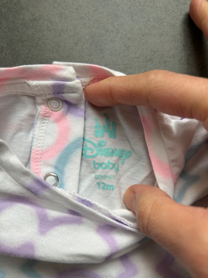 Marque: Disney baby Taille: 12 mois Couleur: violet-turquoise-rose-blanc Particularité: Manches longues Avec petits volants aux épaules boutons pressions en haut du dos Lavé mais non repassé État: neuf sans étiquette ⚠️ n’hésitez pas à regarder dans mon dressing pour faire un lot avec d’autres articles-> remise faite avec plaisir sur le tout 💸