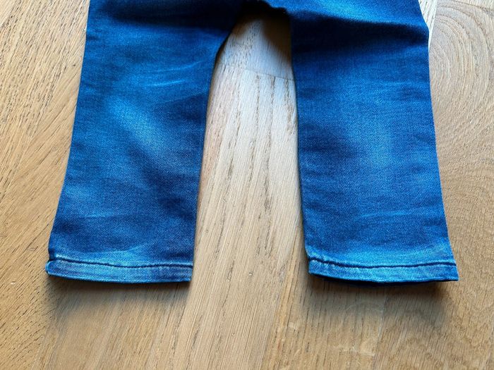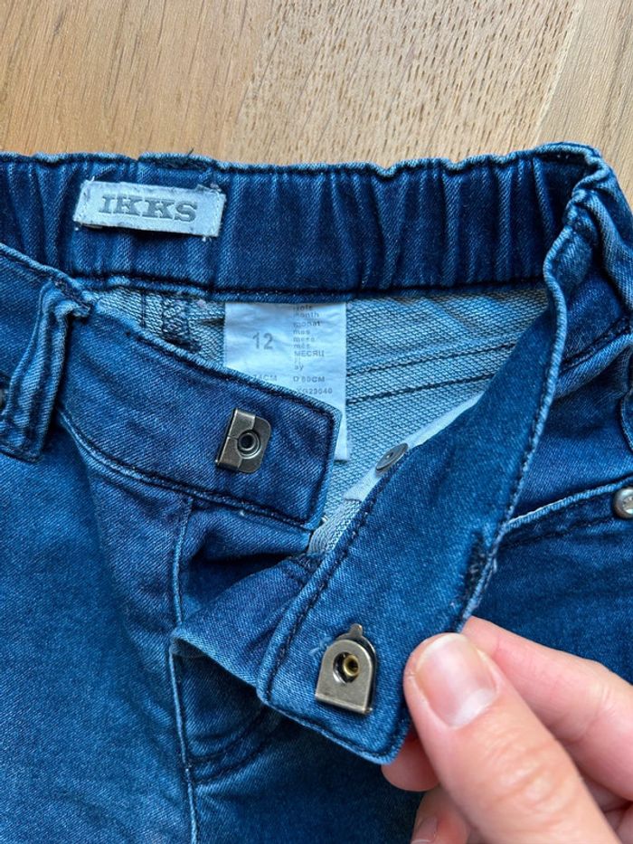 Marque: ikks Taille: 12 mois Couleur: bleu foncé délavé Particularité: Faux diamants sur le bord des poches Fermeture par clips 2 vraies poches latérales avant Et 2 vraies poches arrières Passants pour une ceinture Effet délavé a certains endroits des jambes Lavé et repassé État: neuf sans étiquette