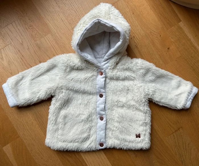 Marque: carrément beau Taille: 12 mois Couleur: crème et blanc cassé Particularité: Manches longues Boutons pressions dorés Plaque dorée de la marque sur le devant Capuche 2 vraies poches latérales Lavé mais non repassé État: en parfait état pour une seconde vie ⚠️ n’hésitez pas à regarder dans mon dressing pour faire un lot avec d’autres articles-> remise faite avec plaisir sur le tout 💸