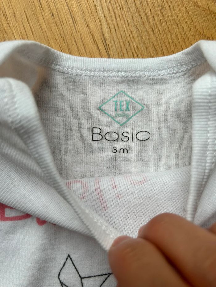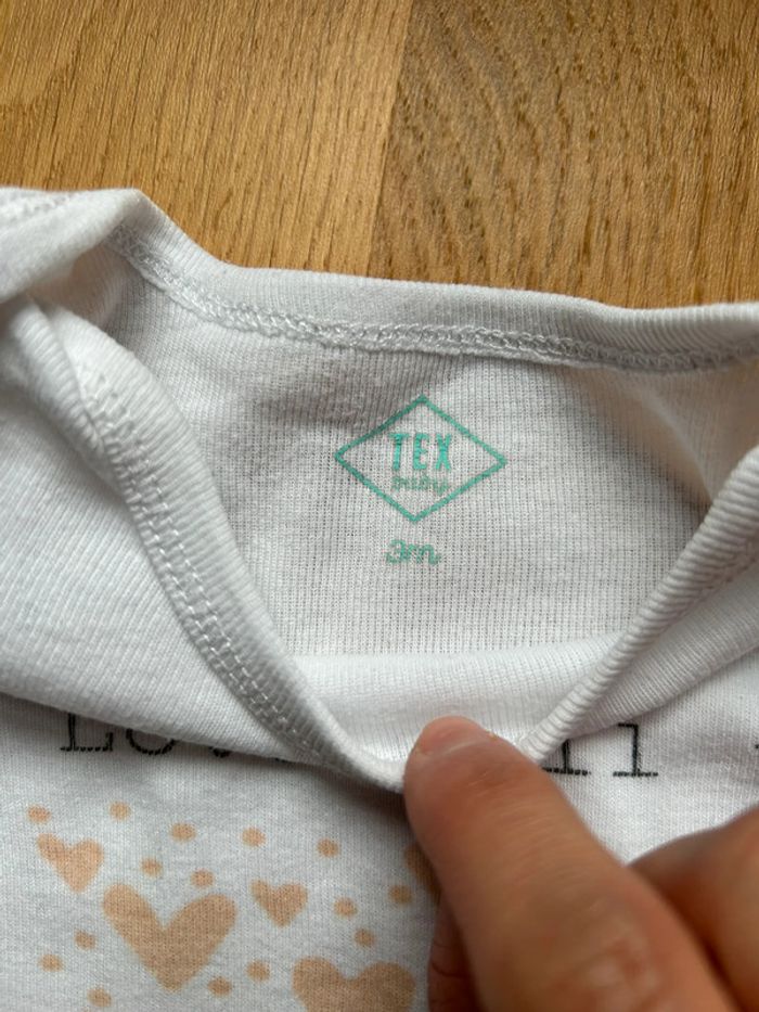 Marque: tex baby Taille: 3 mois Tons des couleurs: blanc-rose pale Particularité: Manches longues Lavés et repassés État: neuf sans étiquette ⚠️ n’hésitez pas à me demander à créer un lot avec différents articles de mon dressing pour économiser sur les frais de port et je vous ferais une remise globale avec plaisir 💶🪪💸