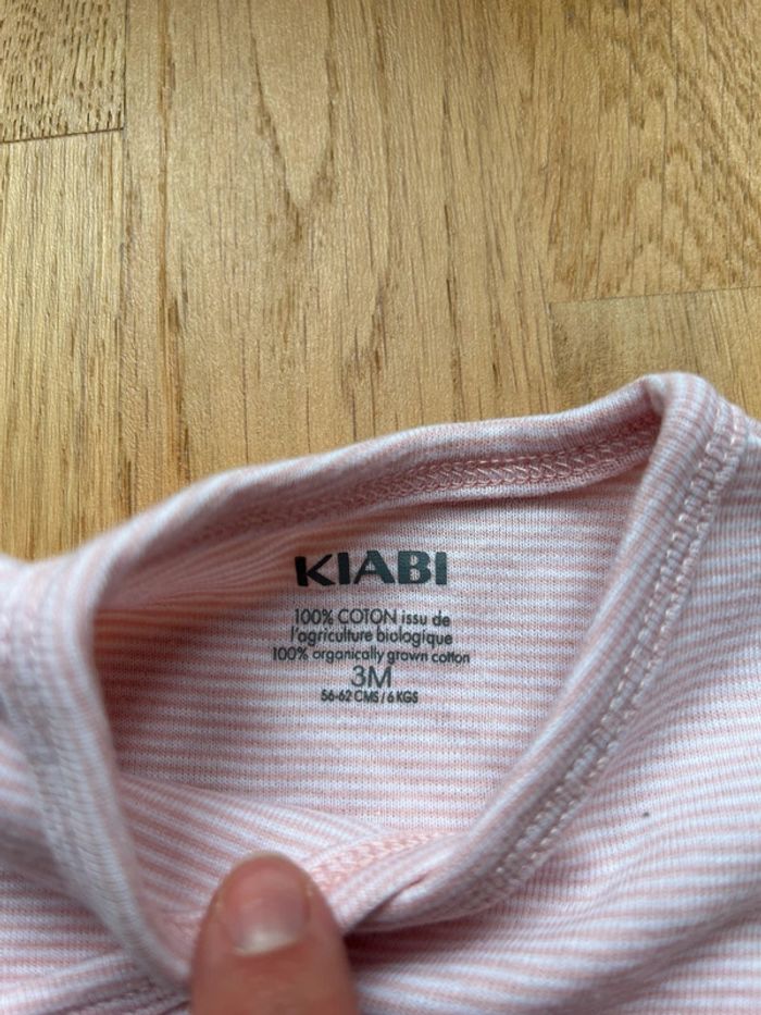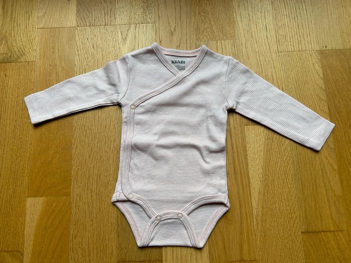 Marque: kiabi Taille: 3 mois Tons des couleurs: rose pale Particularité: Manches longues À rayures Pressions croisées Lavé et repassé État: neuf sans étiquette ⚠️ n’hésitez pas à me demander à créer un lot avec différents articles de mon dressing pour économiser sur les frais de port et je vous ferais une remise globale avec plaisir 💶🪪💸