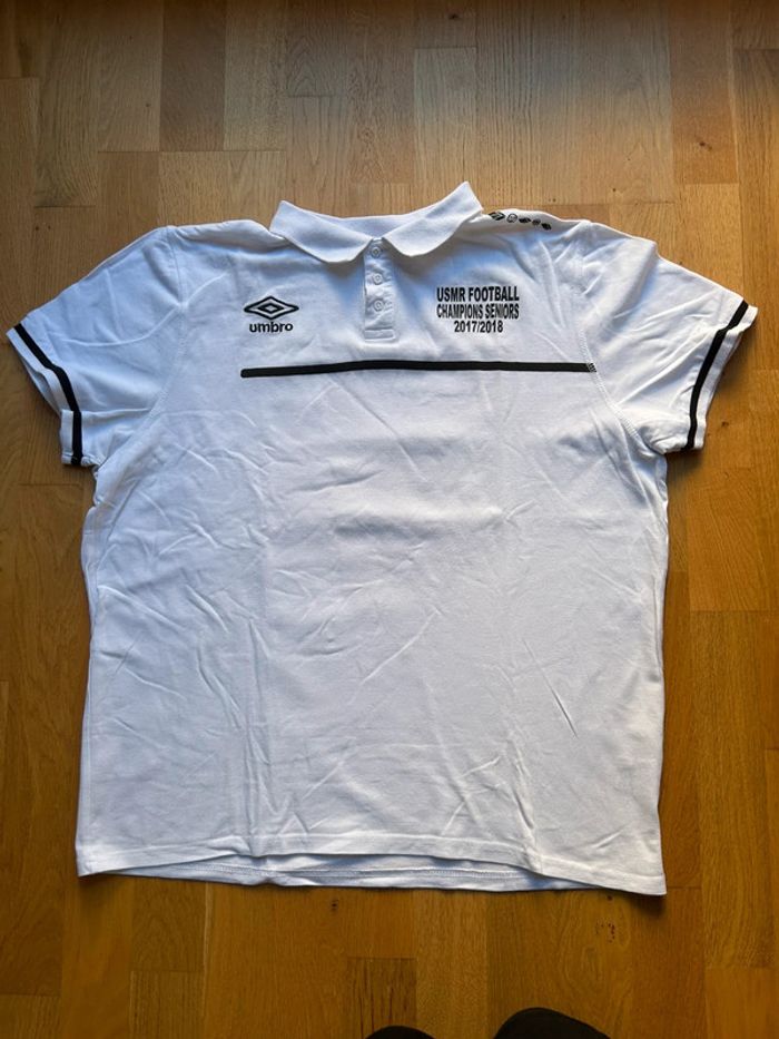 Marque: Umbro Taille: xl Couleur: noir et blanc Particularité: Matiere polo Coupe polo avec col et boutons Manches courtes Flocage « usmr football champion seniors 2017/2018 » Club marly le roi 78 champion de la coupe des Yvelines cette saison la. État: neuf sans étiquette ⚠️ n’hésitez pas à regarder dans mon dressing pour faire un lot avec d’autres articles-> remise faite avec plaisir sur le tout 💸
