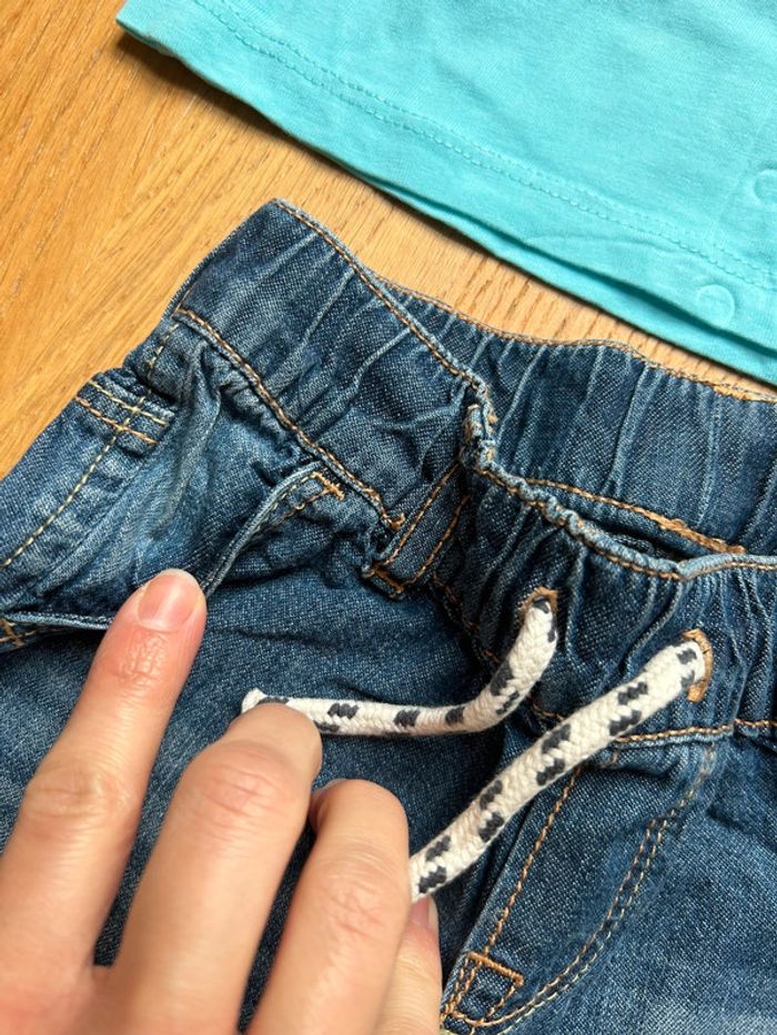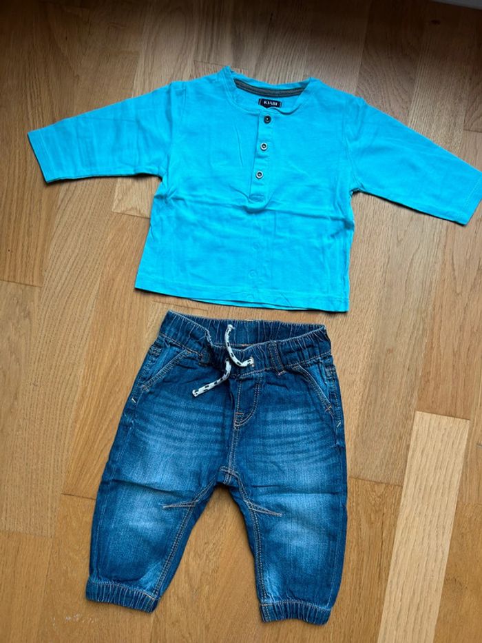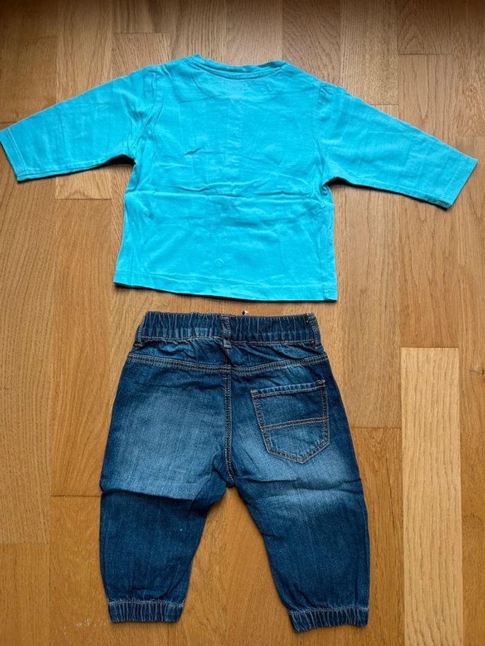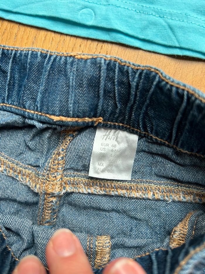 Marque: H&M et kiabi Taille: 6 mois Couleurs: jeans et turquoise Particularité: Jeans fin Avec lacet à la taille Vraies poches aux fesses Haut manches longues Col tunisien avec boutons Lavés et repassés État: neuf sans étiquette ⚠️ lot possible avec d’autres articles de mon dressing pour économie sur les frais de port et je vous ferais un prix global sur l’ensemble avec plaisir 🤑