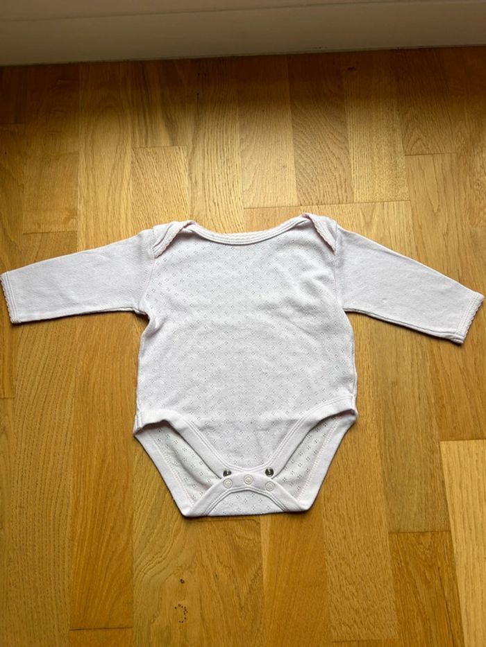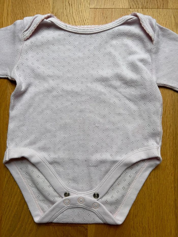 Marque: inconnue Taille: 3-6 mois Couleur: rose clair Particularité: Manches longues Matière légère et aérée Boutons pressions à l’entrejambe Lavé et repassé État: en parfait état pour une seconde vie ⚠️ n’hésitez pas à regarder dans mon dressing pour faire un lot avec d’autres articles-> remise faite avec plaisir sur le tout 💸