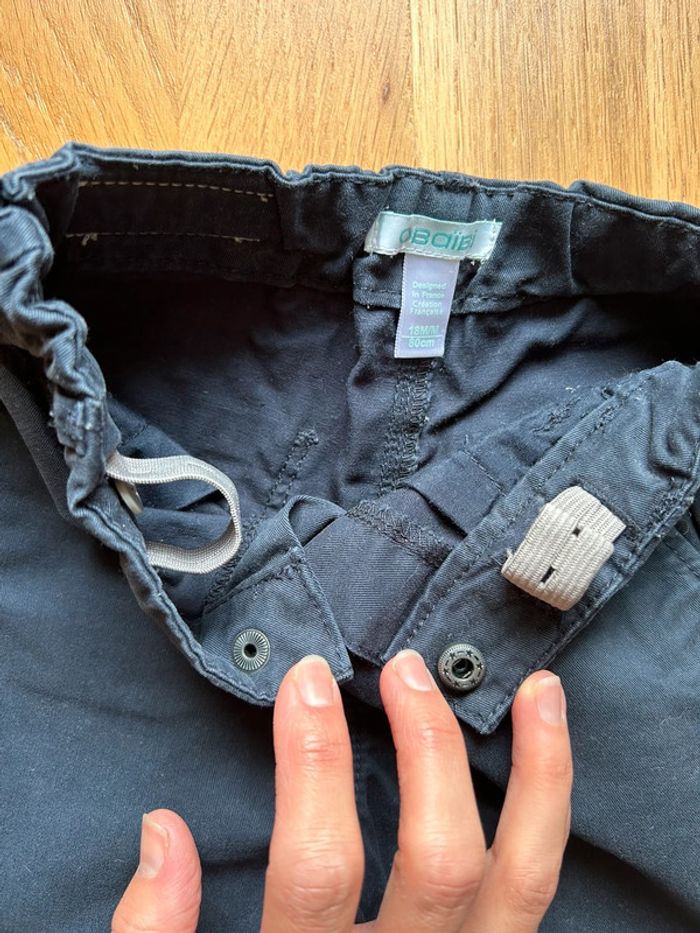 Marque: obaibi Taille: 18 mois Couleur: bleu marine Particularité: Idéal pour les cérémonies Bouton pression Ceinture interne ajustable 2 vraies poches latérales 2 vraies poches arrière Plaque cuir gris avec la marque à la taille arrière Lavé et repassé État: neuf sans étiquette ⚠️ n’hésitez pas à regarder dans mon dressing pour faire un lot avec d’autres articles-> remise faite avec plaisir sur le tout 💸
