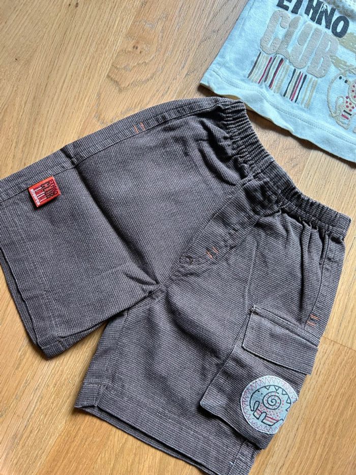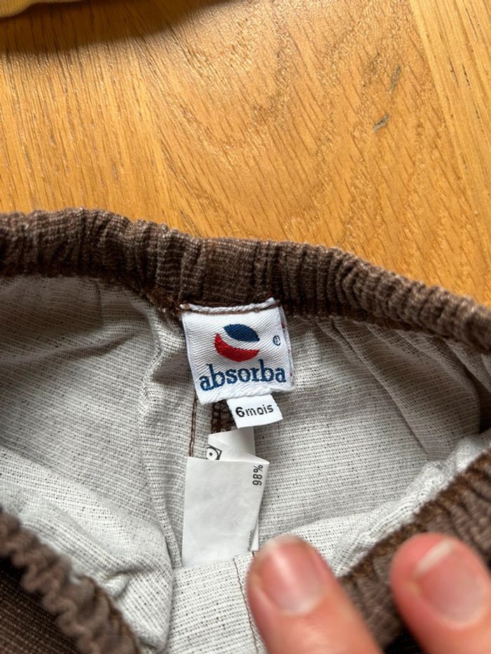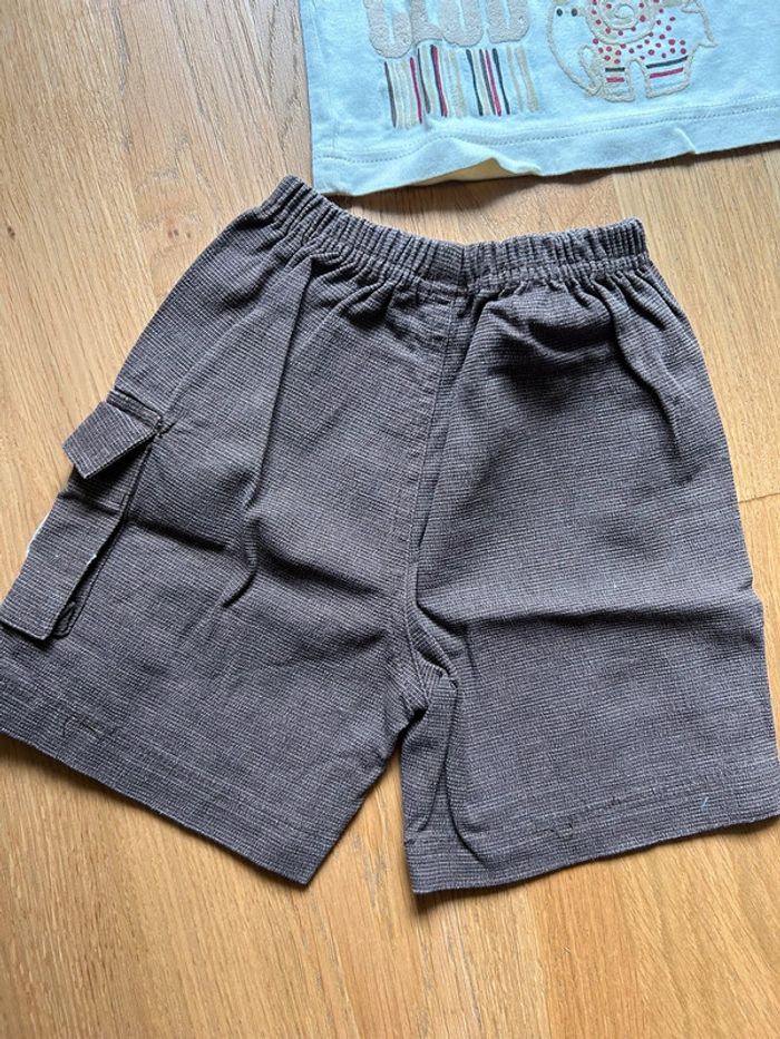 Marque: absorba et obaibi Taille: 6 mois Couleur: marron-crème-marine et jaune Particularité: T-shirt et short assortis de la marque absorba Short taille élastiquée Une poche à scratch à la cuisse gauche T-shirt manches courtes avec 2 boutons pression à l’épaule gauche Chaussettes obaibi taille 15/18 OFFERTES 💝 État: l’ensemble Absorba est neuf sans étiquette Les chaussettes Obaibi que je vous offre déjà portées mais en bon état pour une seconde vie ⚠️ n’hésitez pas à regarder dans mon dressing pour faire un lot avec d’autres articles-> remise faite avec plaisir sur le tout 💸