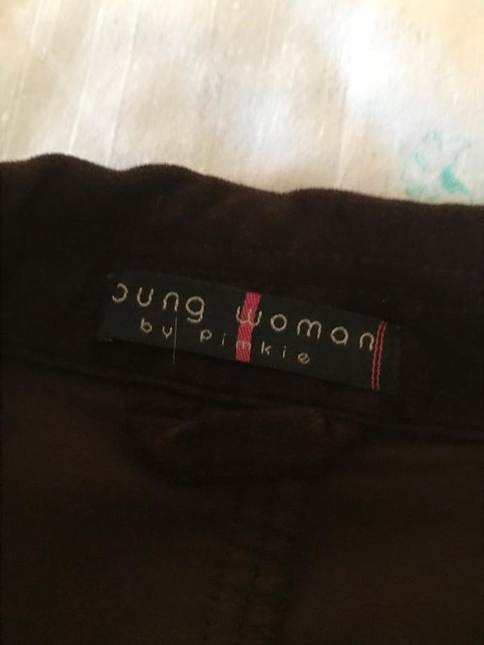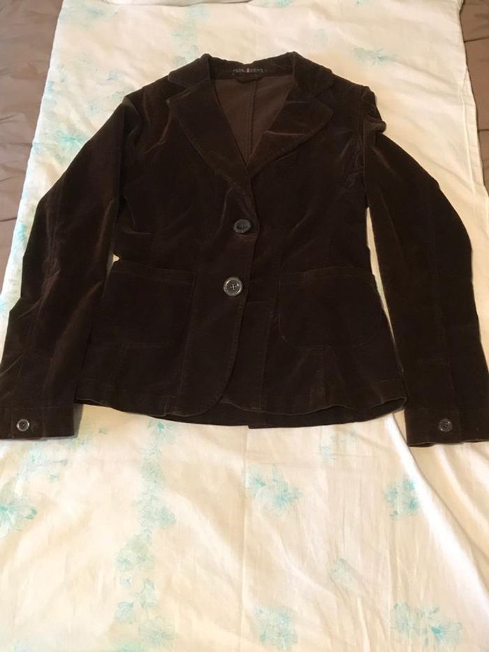 Veste cintrée de marque Pimkie velours marron, non doublée, fente au dos, 2 poches plates, longueur à partir épaule 61 cm Taille 36 tres bon état aucunes imperfections simplement déjà portée
