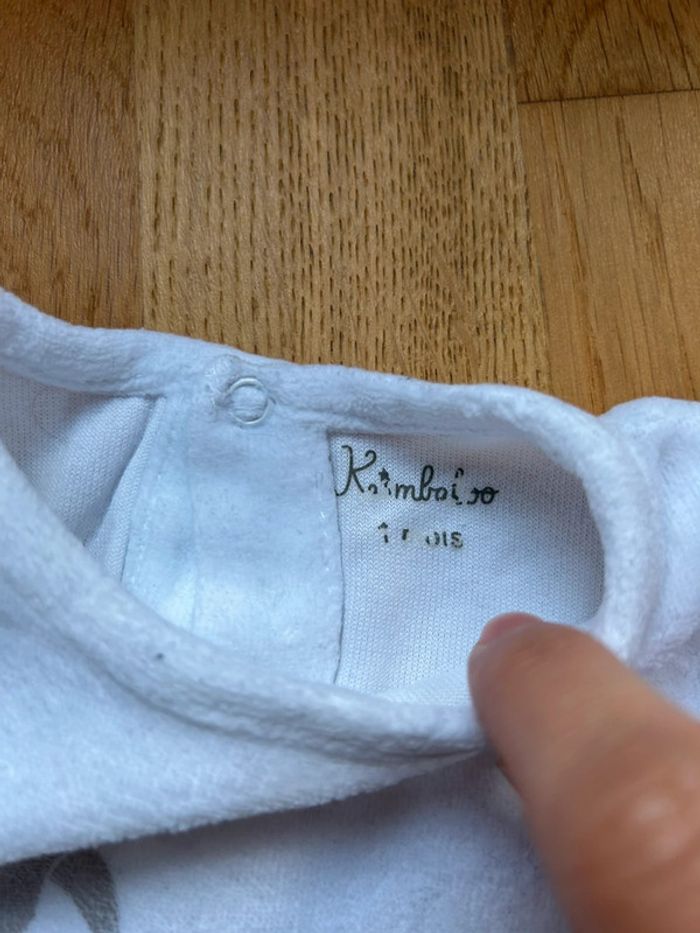 Marque: kimbaloo Taille: 1 mois Tons des couleurs: blanc Particularité: en velours, boutons pressions au dos, petit lapin lavé et repassé État: en parfait état bien que déjà porté ⚠️ lot possible avec d’autres articles de mon dressing pour économie sur les frais de port et je vous ferais un prix global sur l’ensemble avec plaisir 🤑