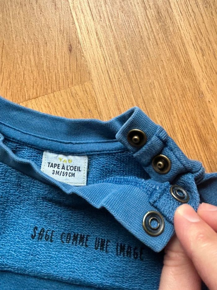 Marque: TAO Taille: 3 mois Tons des couleurs: bleu roi Particularité: pantalon jogging 2 vraies poches et lacet avec sweat assorti 2 pressions à l’épaule État: neuf ⚠️ lot possible avec d’autres articles de mon dressing pour économie sur les frais de port et je vous ferais un prix global sur l’ensemble avec plaisir 🤑