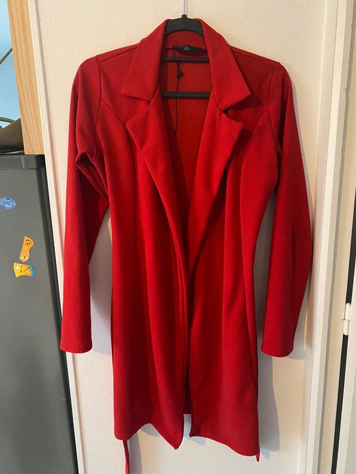 Veste blazer longue rouge. En bon état. Petit défaut visible dernière photo