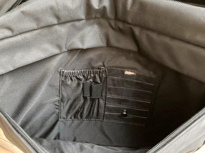 Peut contenir un ordinateur grâce à sa pochette rembourrée Nombreuse pochettes de rangement Coupure sur l’arrière du sac (la partie contre soi) qui n’a pas traversée la doublure #bazaramd