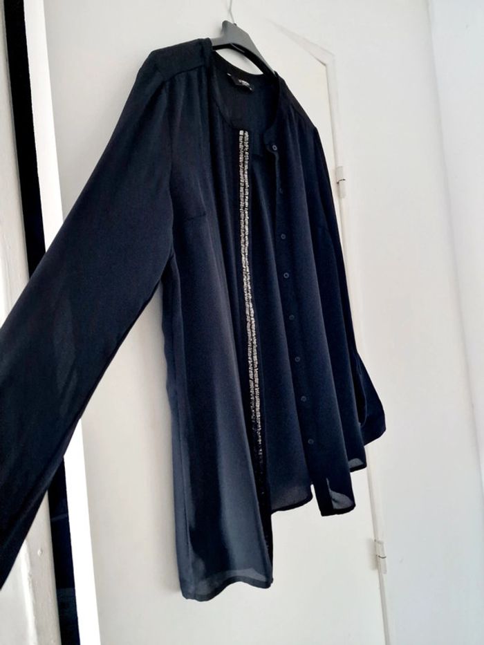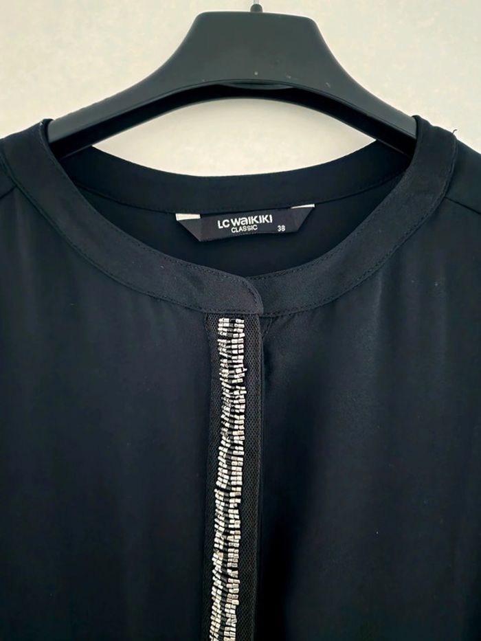Chemise en mousseline noire avec strass taille 38 jamais portée. Prix sur lot dans mon dressing #pull #sweat #combinaison #femme #pantalon #tshirt #haut #robe #jogging #leggings #jeggings #veste #manteau #gilet #pyjama