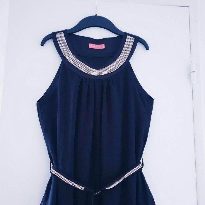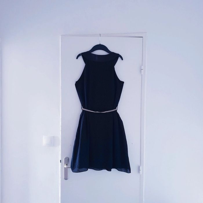 Robe noire, strass sur le col et sur la ceinture. En mousseline doublée. Taille M-L Prix sur lot dans mon dressing #pantalon #legging #jegging #pull #jean #tshirt #pyjama #robe #dentelle #tricot #maille #mousseline #fluide #pyjama #nuisette #gilet #cardigan #kimono #cérémonie #mariage #événement