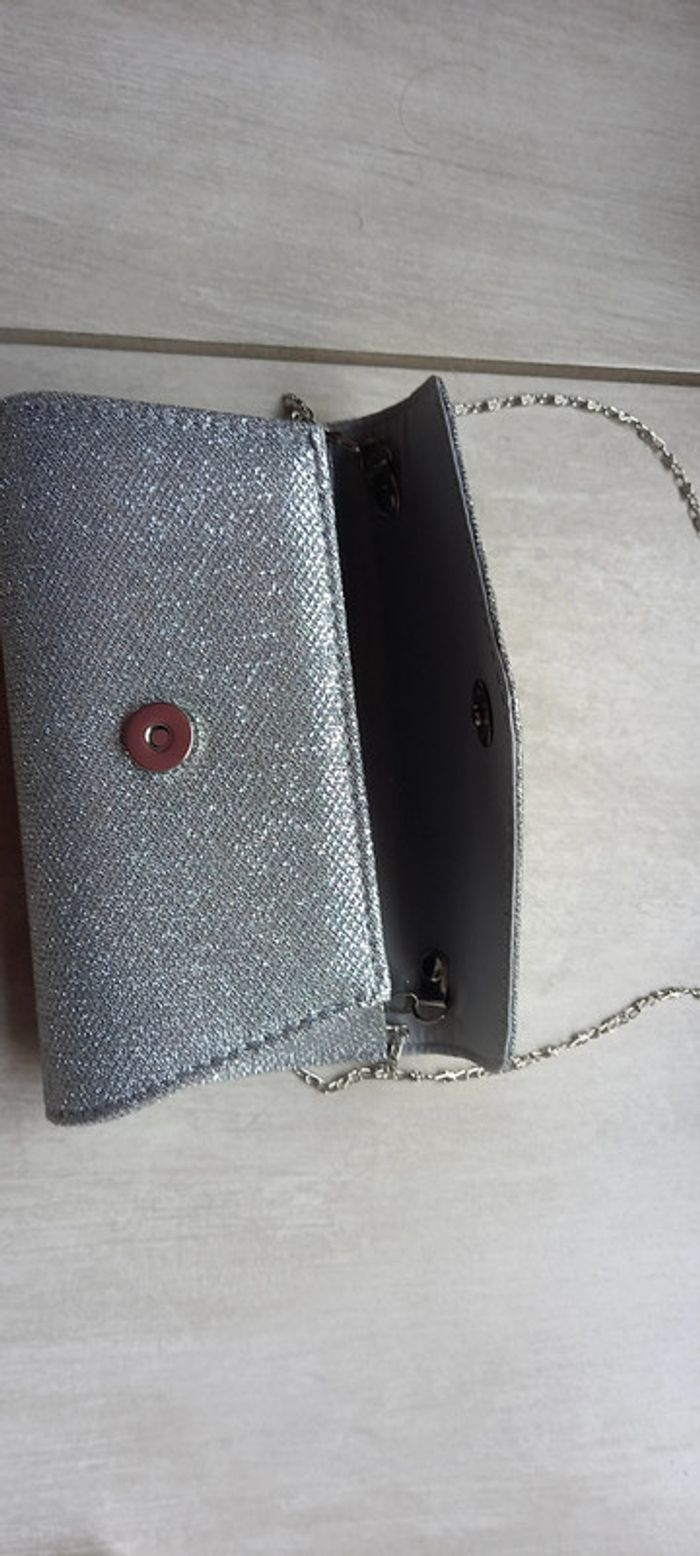 Pochette soirée argent Paillettes Largeur 20.5 Hauteur 10.5 Profondeur 5