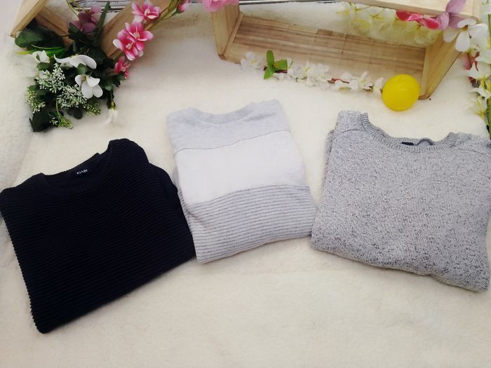 Lot de 3 pulls en parfaite état 1 pulls gris et blanc 1 pulls gris 1 pulls bleu marine