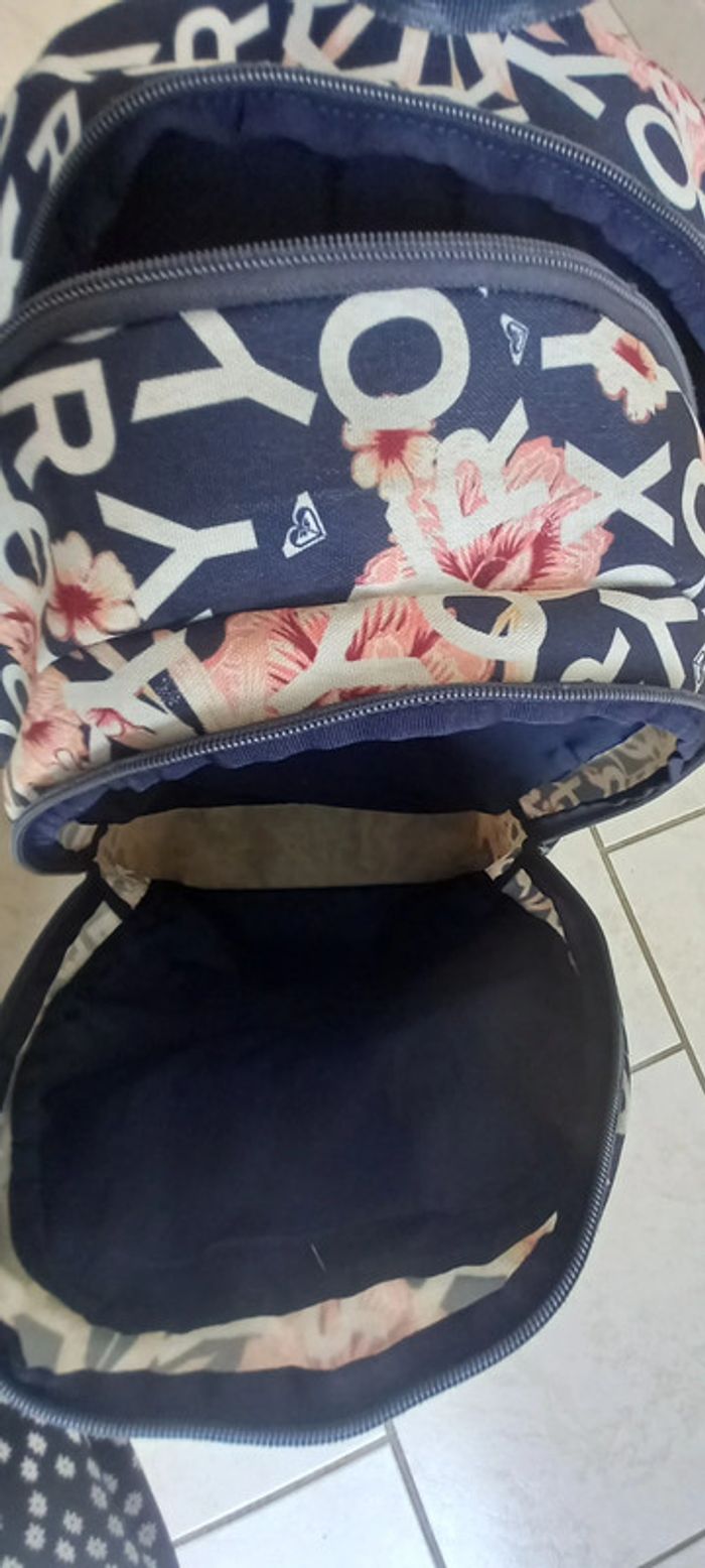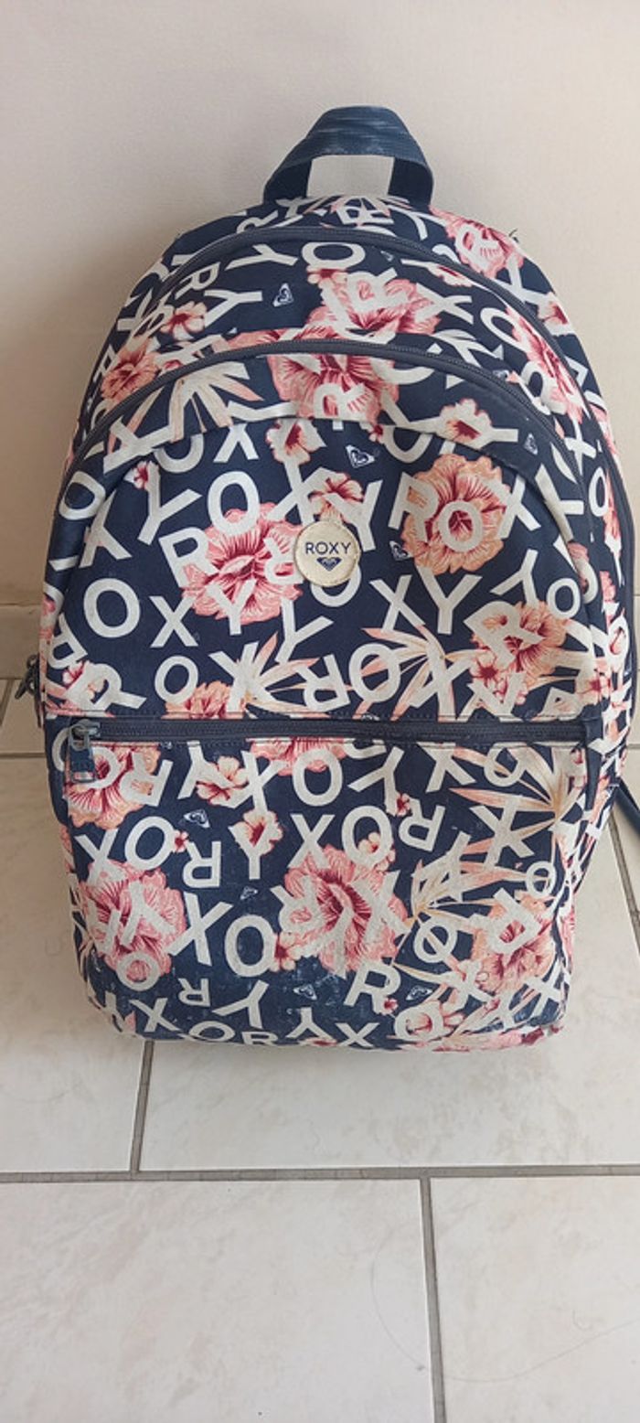 Sac à dos roxy 3 poches :1 grande et 1 moyenne .petite pochette devant Bretelle droite et dessus avoir photos