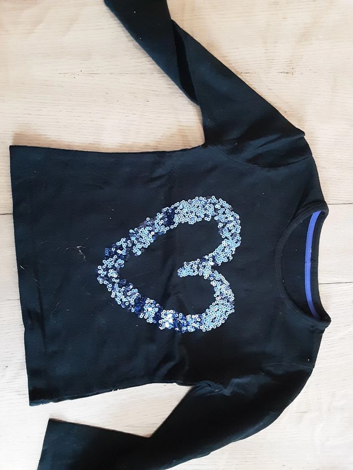Tee-shirt ma,nche longue avec cœur en strass