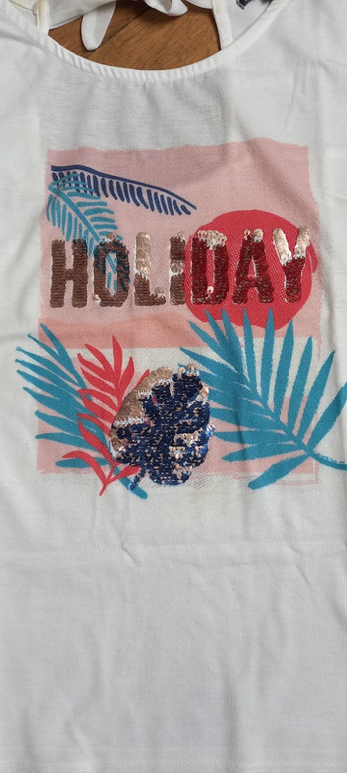 Tee shirt manches courtes Strass Motif holiday