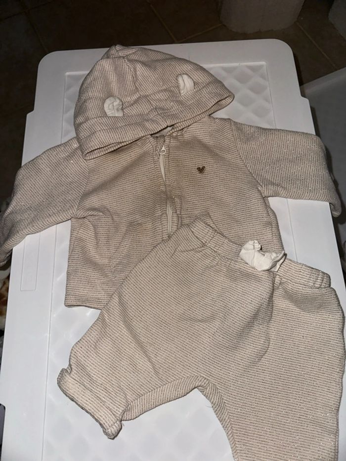 Ensemble Doré paillette et blanc Marque Kiabi Taille 3 mois Capuche oreilles ours Petit cœur sur le côté ⚠️ les articles peuvent contenir des taches d’où à l’usage et/ou stockage ⚠️
