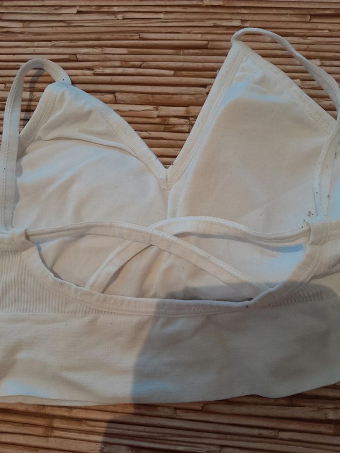 Brassière blanche, avec coques, taille 34/36 coton 100% pas d'étiquette pour la marque, ni la taille croisé au dos Pour petite poitrine 70/75 bonnet A/B