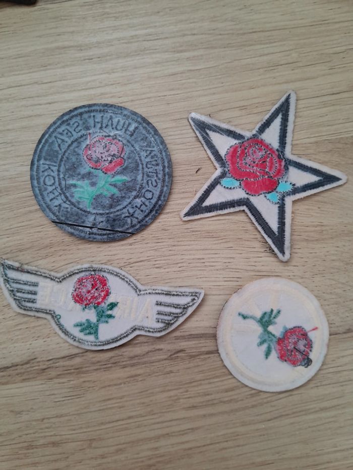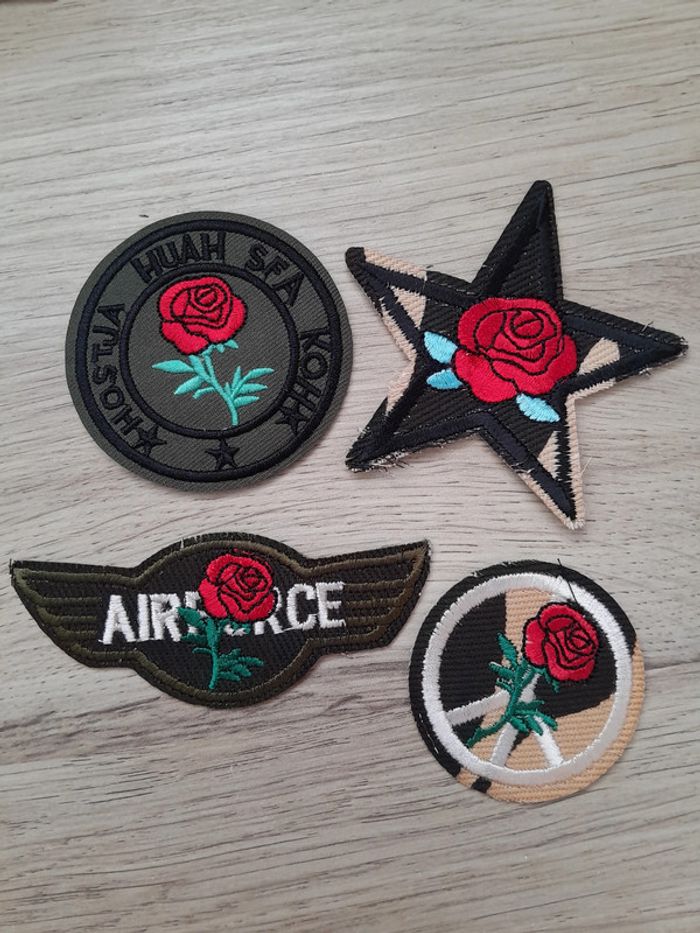 PRIX FERME - NON NEGOCIABLE - Merci Lot de 4 écussons brodés, thermocollants à repasser, Un vêtement déchiré? ou simplement customiser un jeans, t-shirt ou autre... IL SUFFIT DE LES REPASSER.... et voilà !!