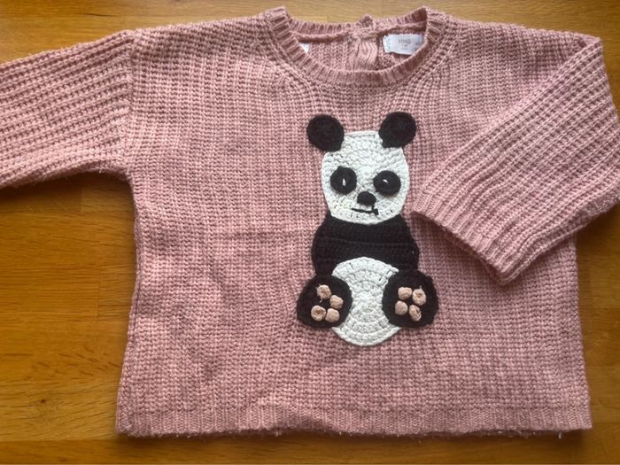 Pull maille rose broderie panda