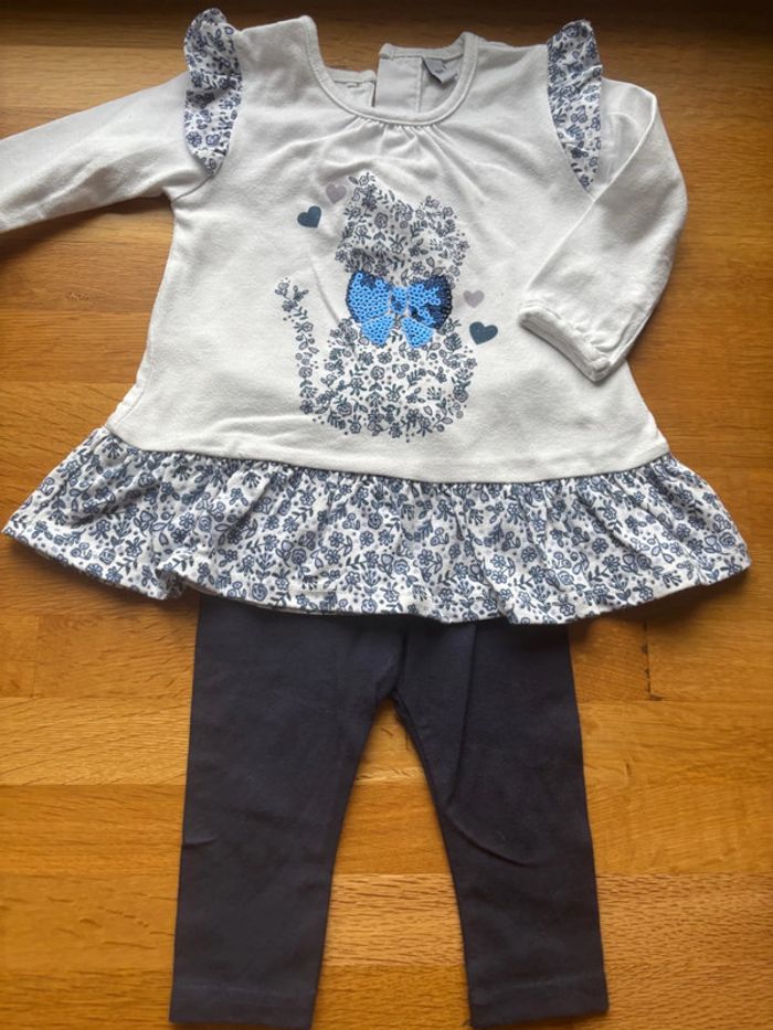 Ensemble legging tunique ton bleu & blanc