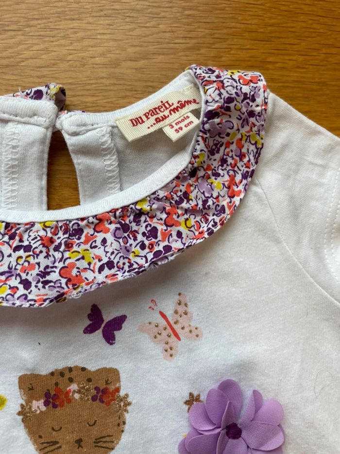 Lot été comprenant 1 t-shirt MC blanc joli col du pareil au même 3 mois