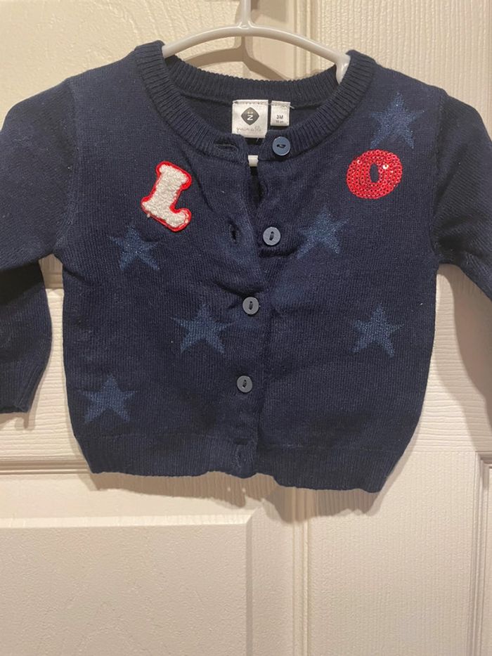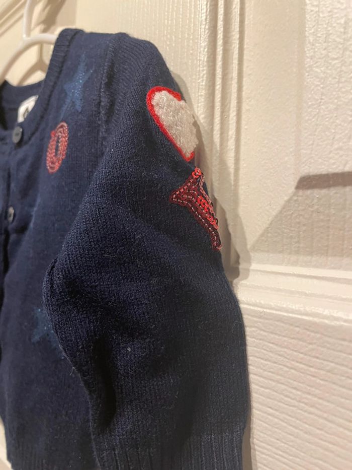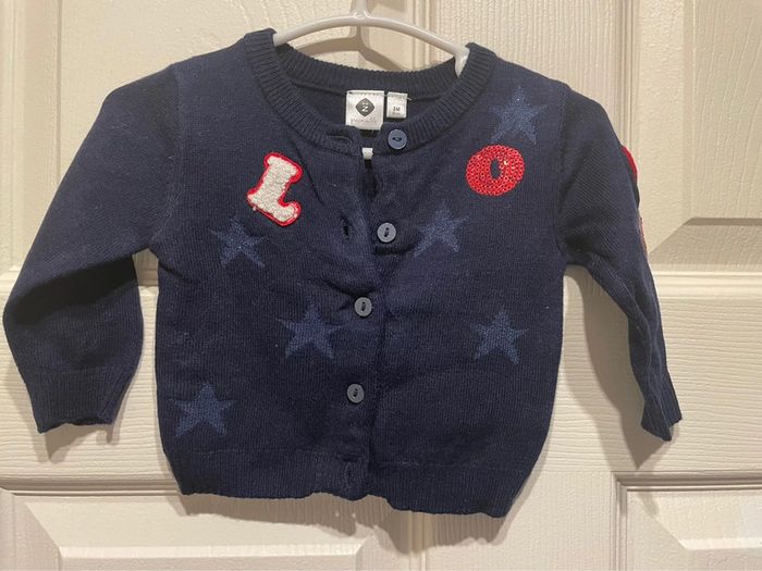 Beau gilet bleu marine / jolies broderies + sequins / effets étoiles z - 3 mois En excellent état