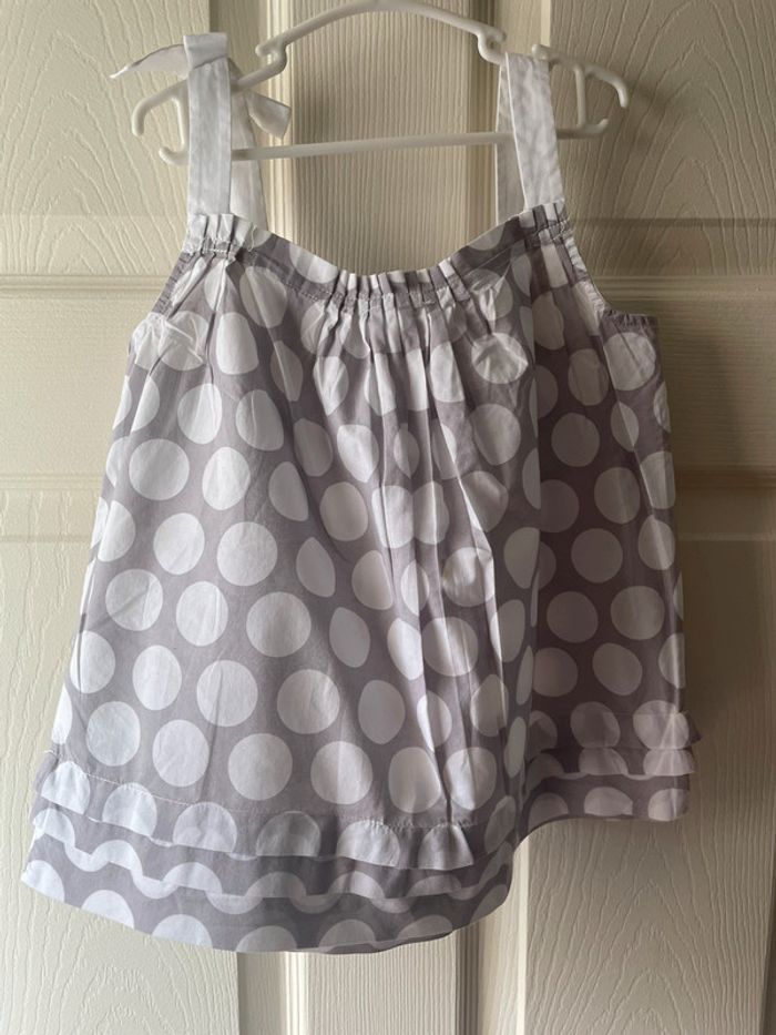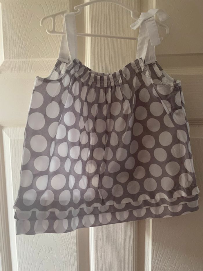 Belle blouse à bretelles grise à pois blancs / bretelles blanches Jacadi - 6 ans En très bon état