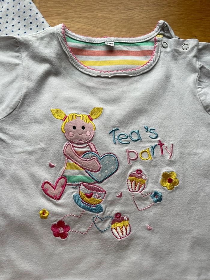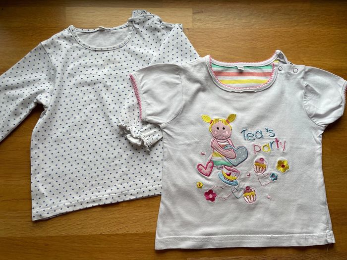 Lot 24 mois comprenant 1 t-shirt ML blanc à motifs bleus + 1 t-shirt MC