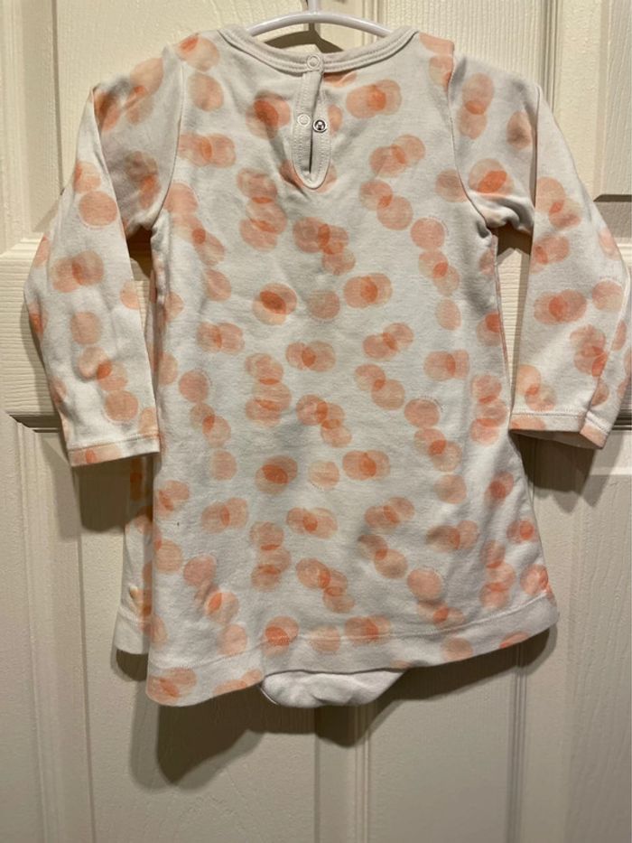 Jolie robe à manches longues en coton blanc pois abricot / body intégré Petit bateau 18 mois En très bon état