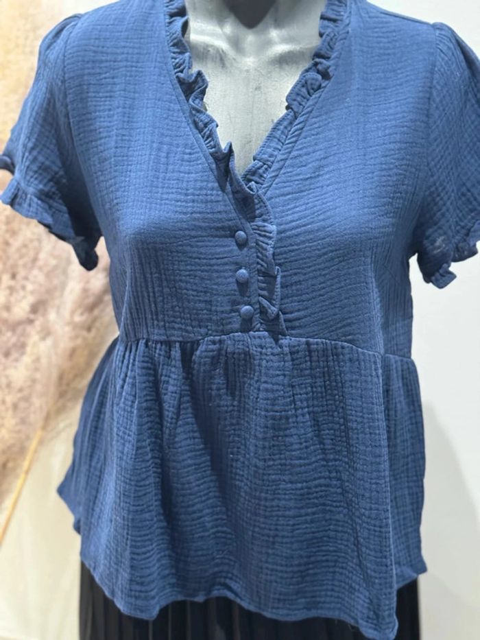 Jolie blouse marine uni gaze de coton T36-38 - photo numéro 3