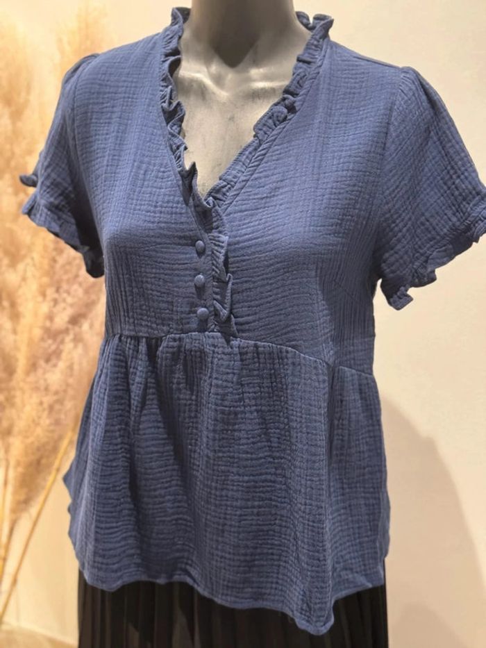Jolie blouse marine uni gaze de coton T36-38 - photo numéro 1
