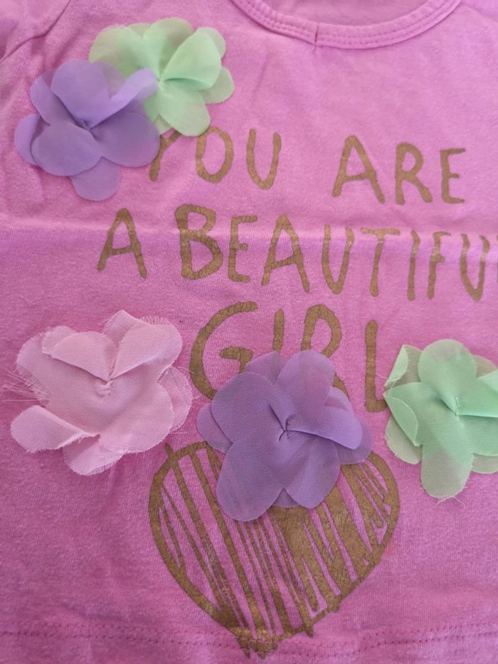 Tee shirt motif relief fleur rose 2 ans - photo numéro 4