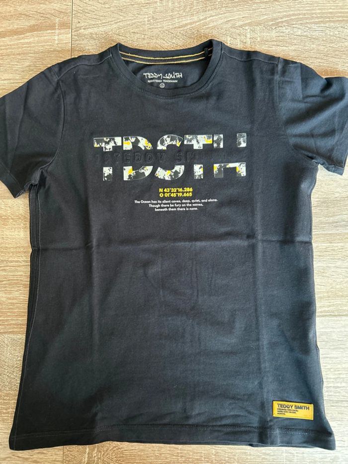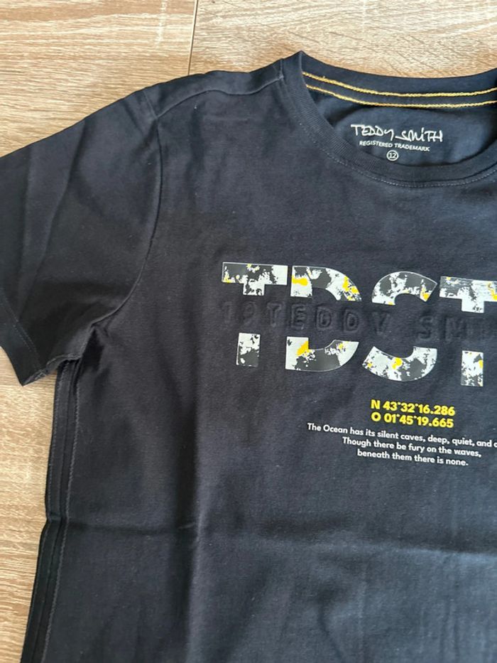 T shirt manches courtes Teddy smith Très bon état proche du neuf Noir avec inscription 12 ans